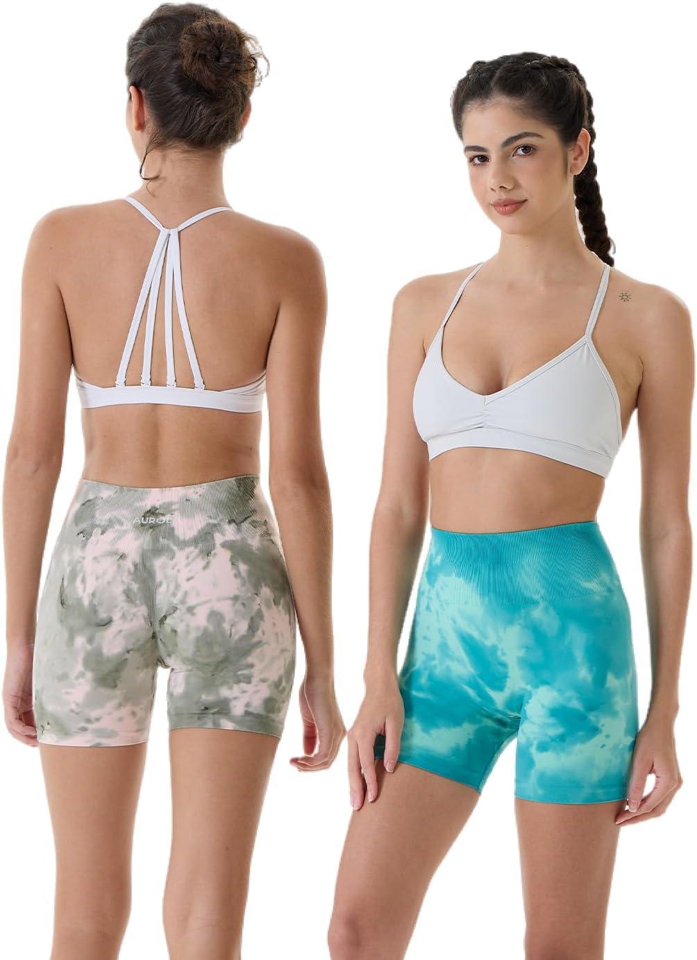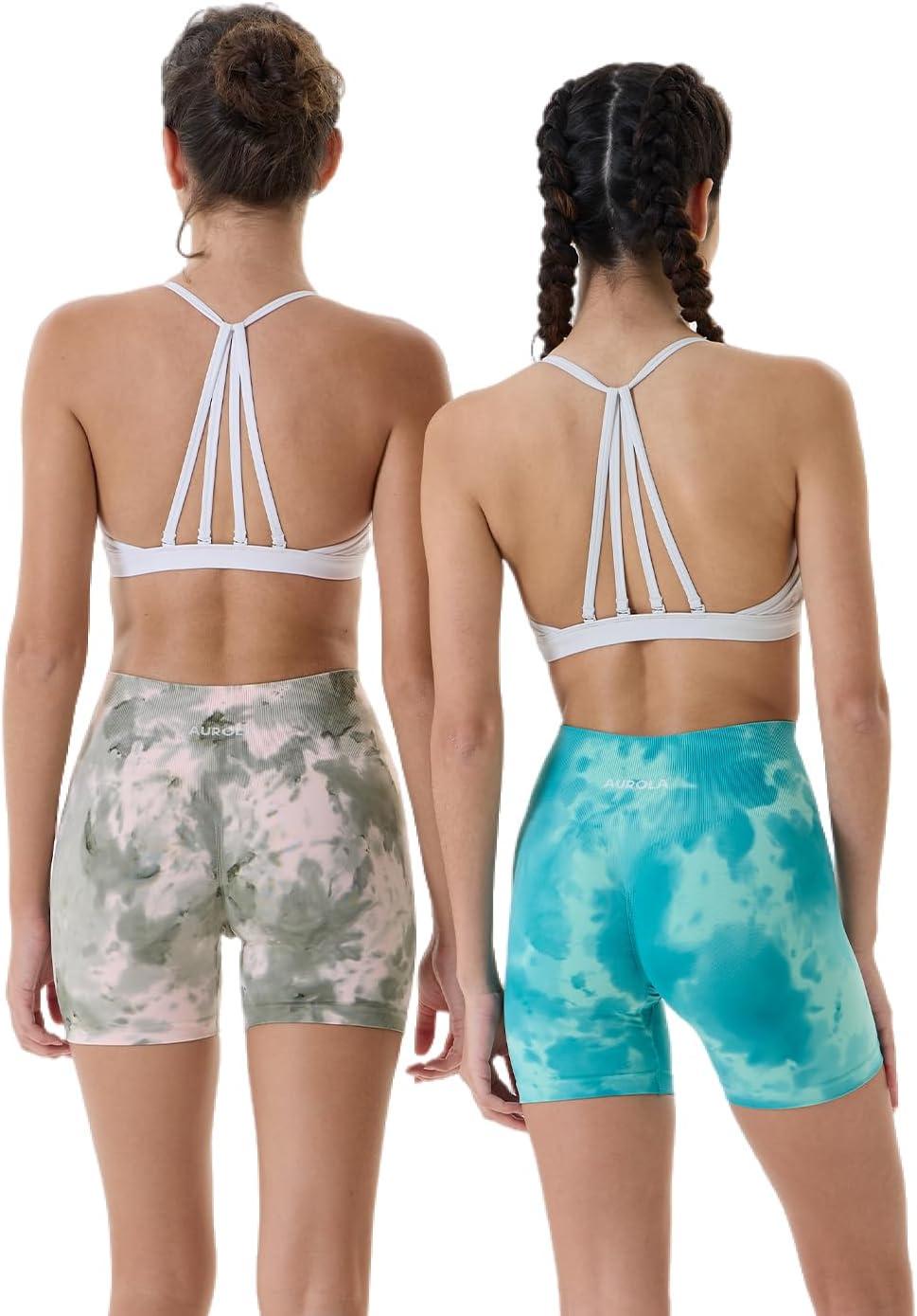 AUROLA Dream Tie Dye Workout Shorts for Women Seamless Scrunch Soft Active Shorts(Ink Tie Dye Green)