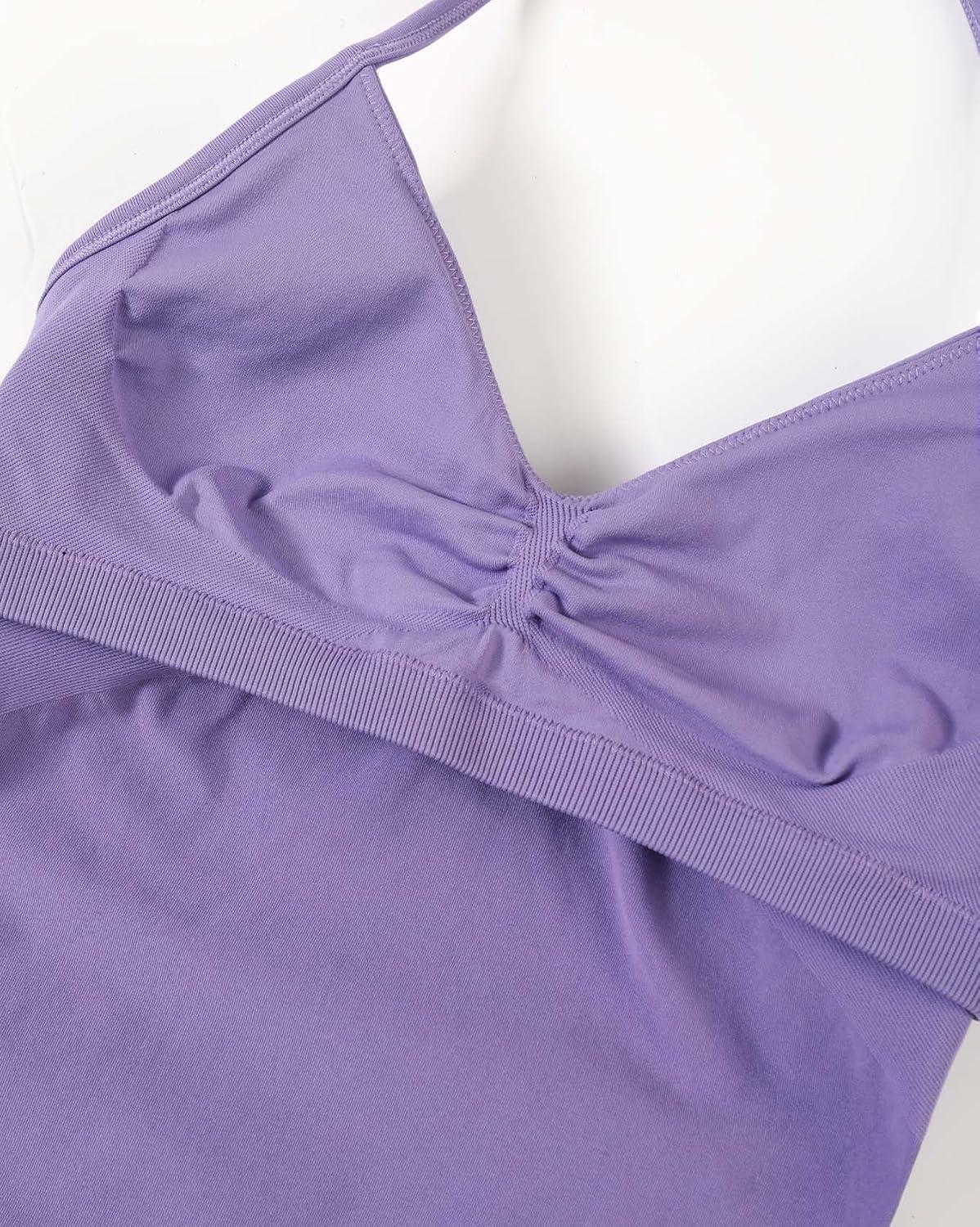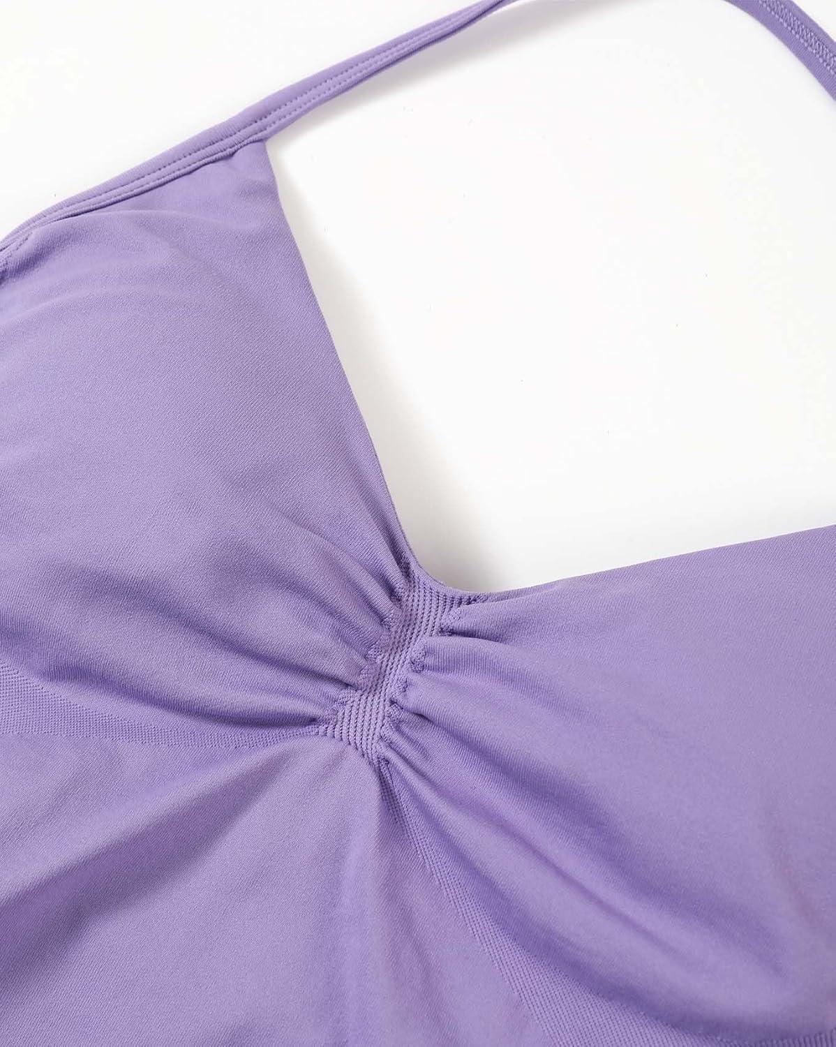 AUROLA Influence Longline Strappy Workout Halter Tops for Women,Removable Cups Padded Bras Impact Gym Yoga Sleeveless Top(Chalk Violet)