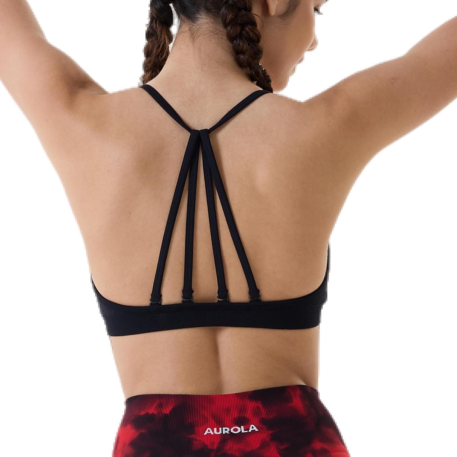 AUROLA Mercury Workout Sports Bras Women Athletic Removable Padded Backless Strapy Minimal Crop Top(Mercury-solid-black)