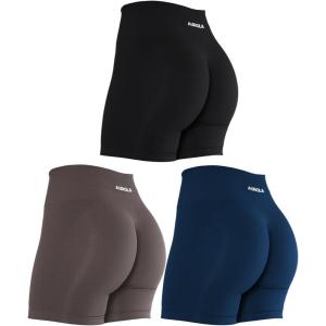 AUROLA Intensify Workout Shorts for Women Seamless Scrunch Short Gym Yoga Running Sport Active Exercise Fitness Shorts(Pack(black/Tuxedo Blue/Chestnut Brown))
