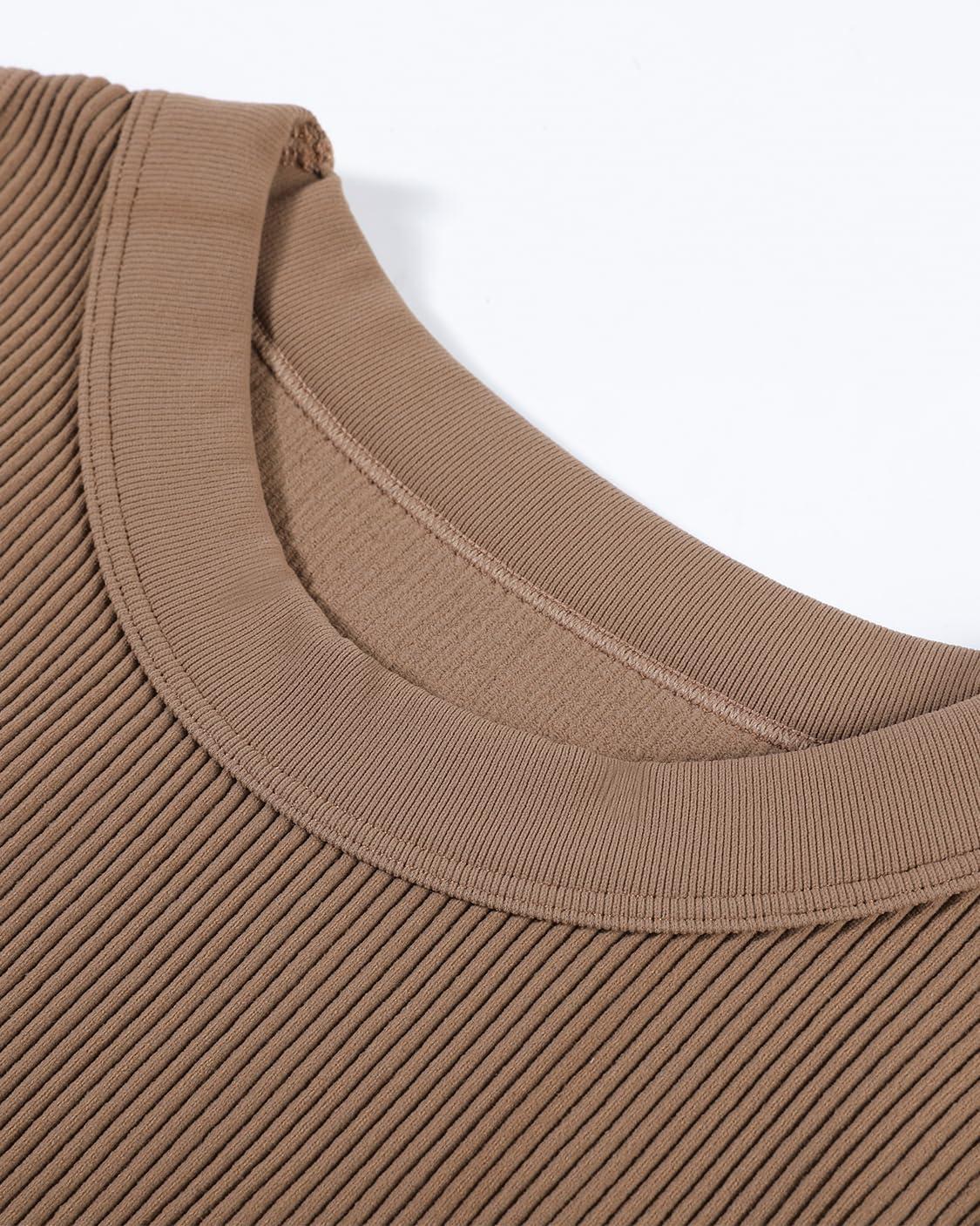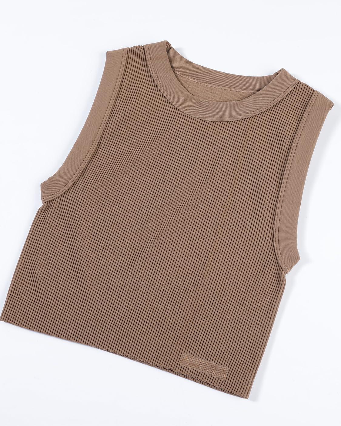AUROLA Essentials Rib Seamless Sleeveless Tank for Women Subtle Logo Round Neck Active Workout Crop Tops(Lion Brown)
