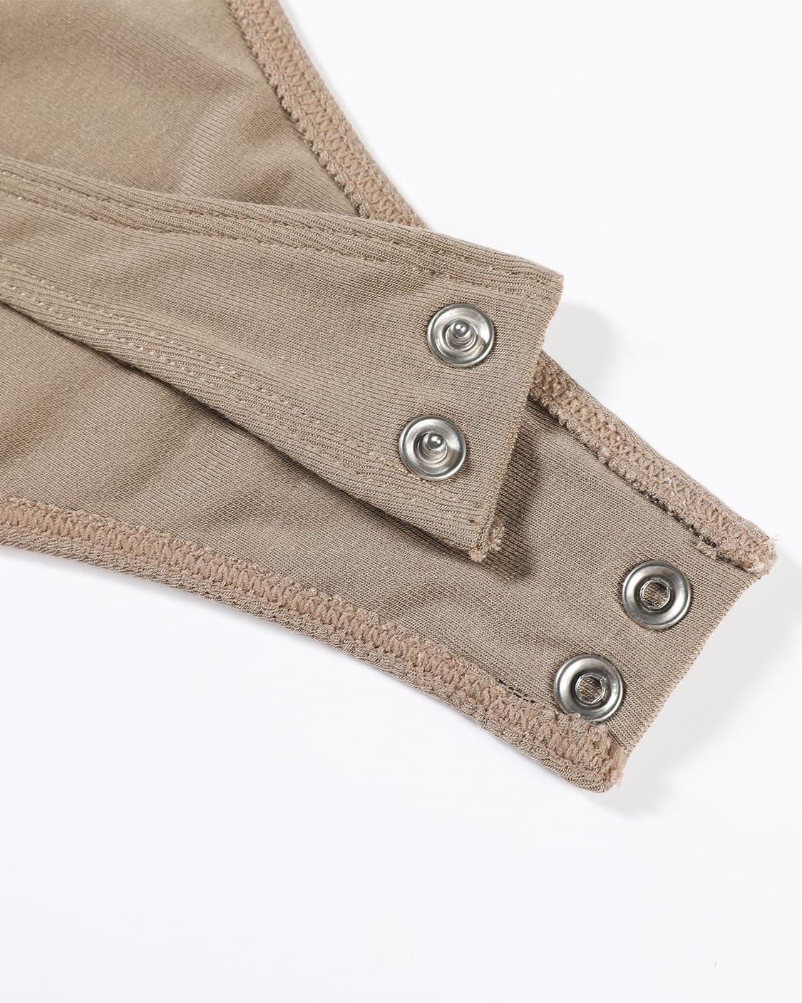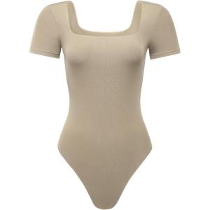 AUROLA Everyday Square Neck Bodysuits,Going Out Short Sleeve Double Lined Stretchy Shirt Tops(Sand)