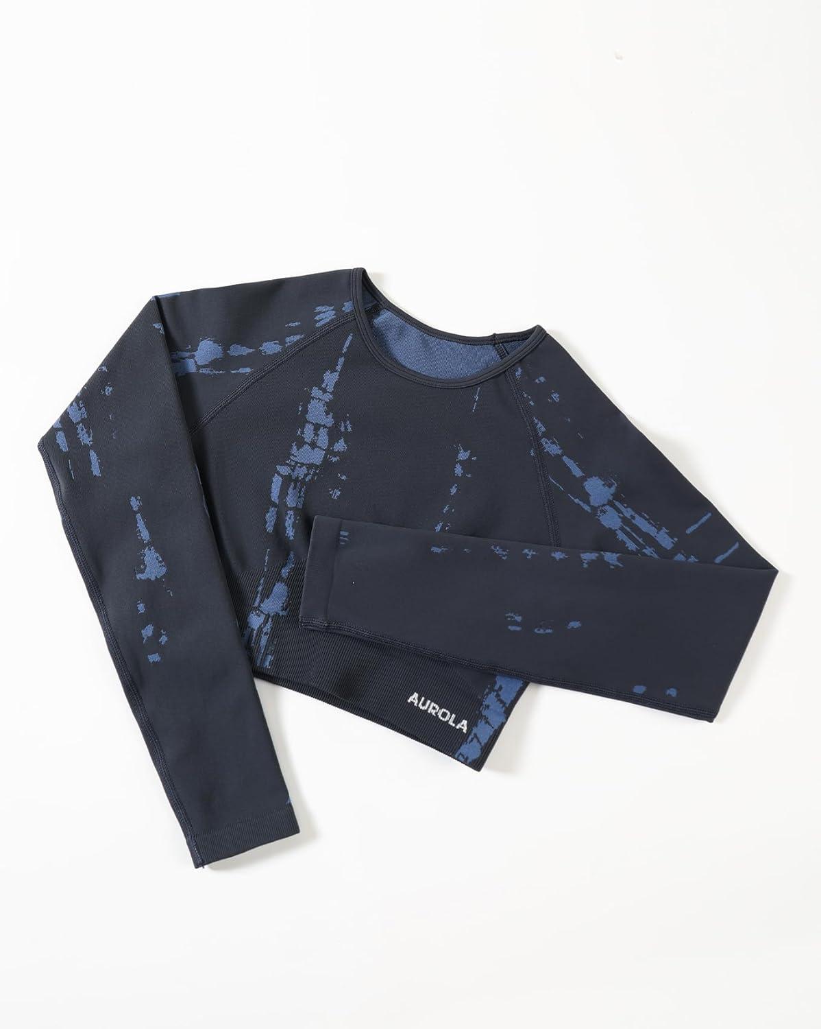 AUROLA Serpent Snake Long Sleeve Shirts for Women, Seamless Workout Crop Tops Crew Neck Cropped T Shirt Athletic Yoga(Dark Grey)