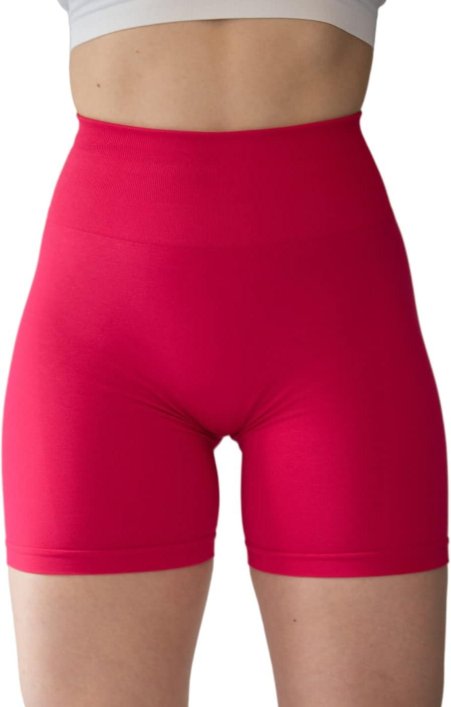 AUROLA Power Workout Shorts for Women Tummy Control Squat Proof Ribbed Thick Seamless Scrunch Active Short(Raspberry Sorbet)