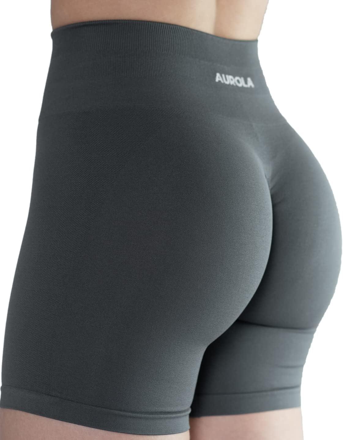 AUROLA Power Workout Shorts for Women Tummy Control Squat Proof Ribbed Thick Seamless Scrunch Active Short(Fog Grey)