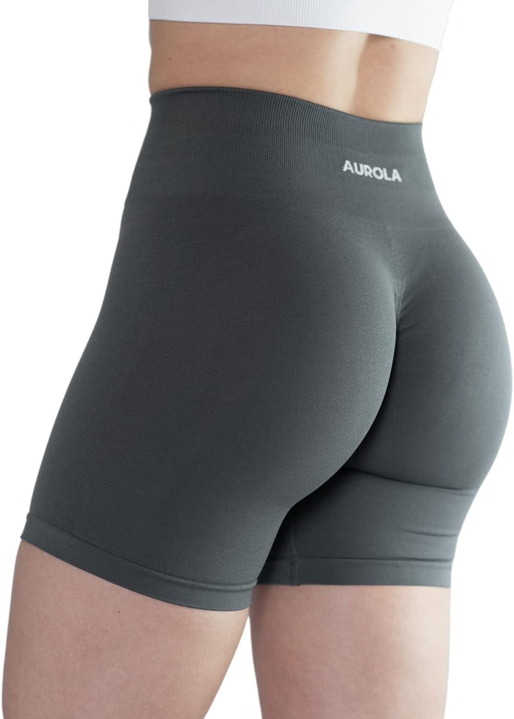 AUROLA Influence Workout Shorts for Women,2.5 3.5 4.5 5.5 6.5 No Roll Up Squat Proof Scrunch Seamless Compression Gym Short(Caneel Bay)