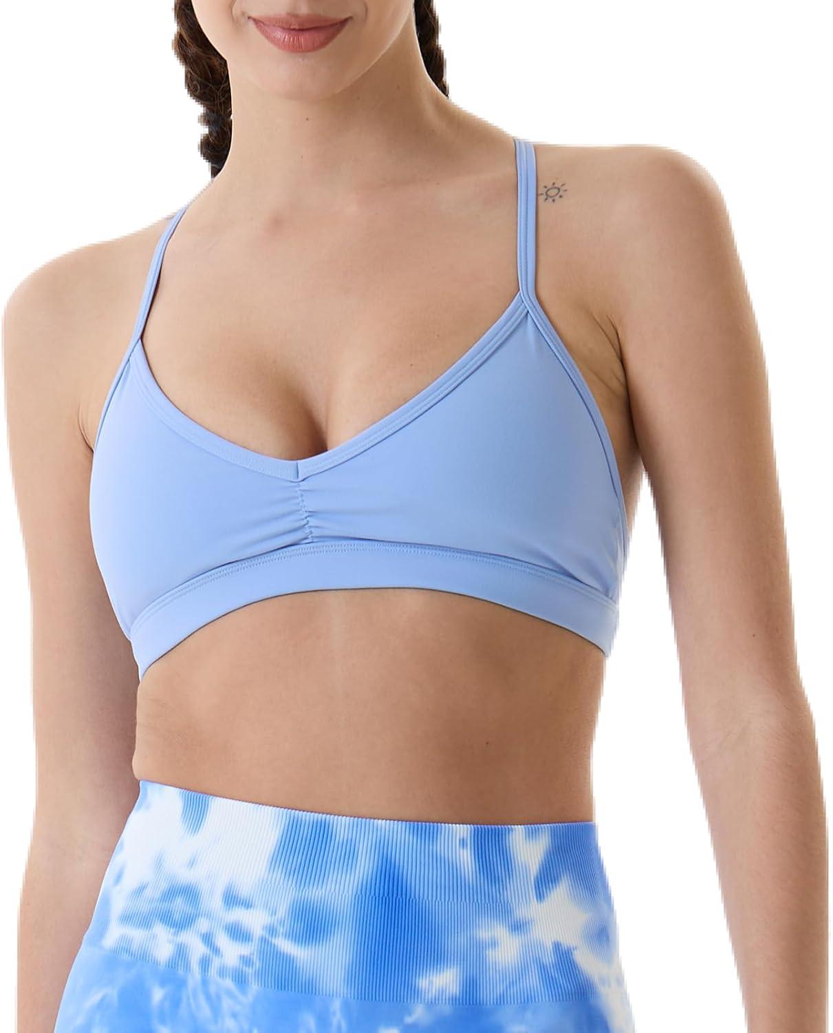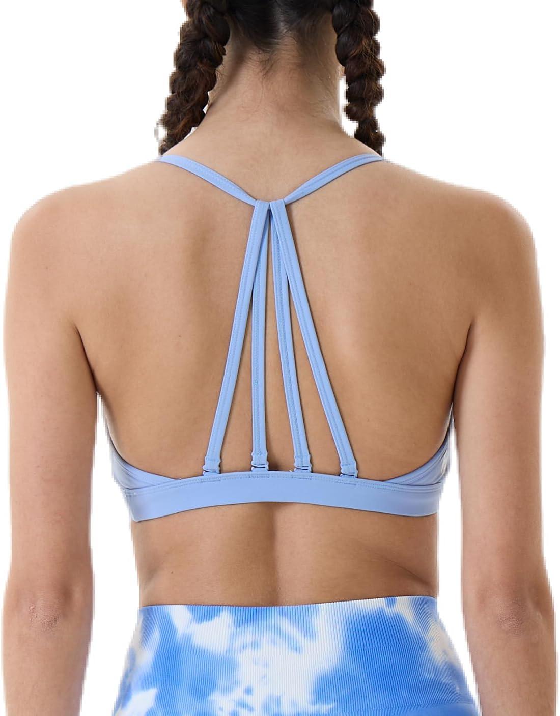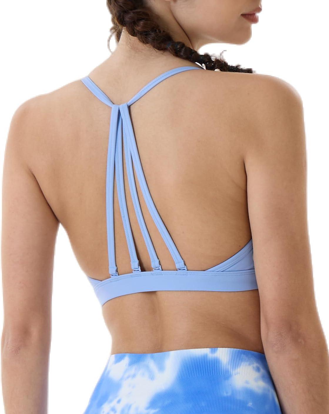 AUROLA Mercury Workout Sports Bras Women Athletic Removable Padded Backless Strapy Minimal Crop Top(Serenity Blue)