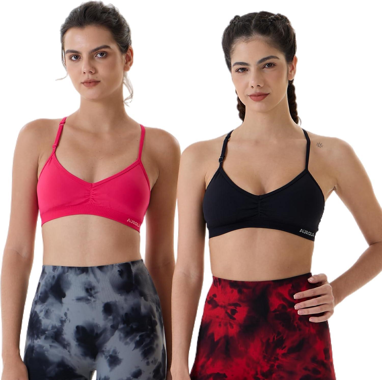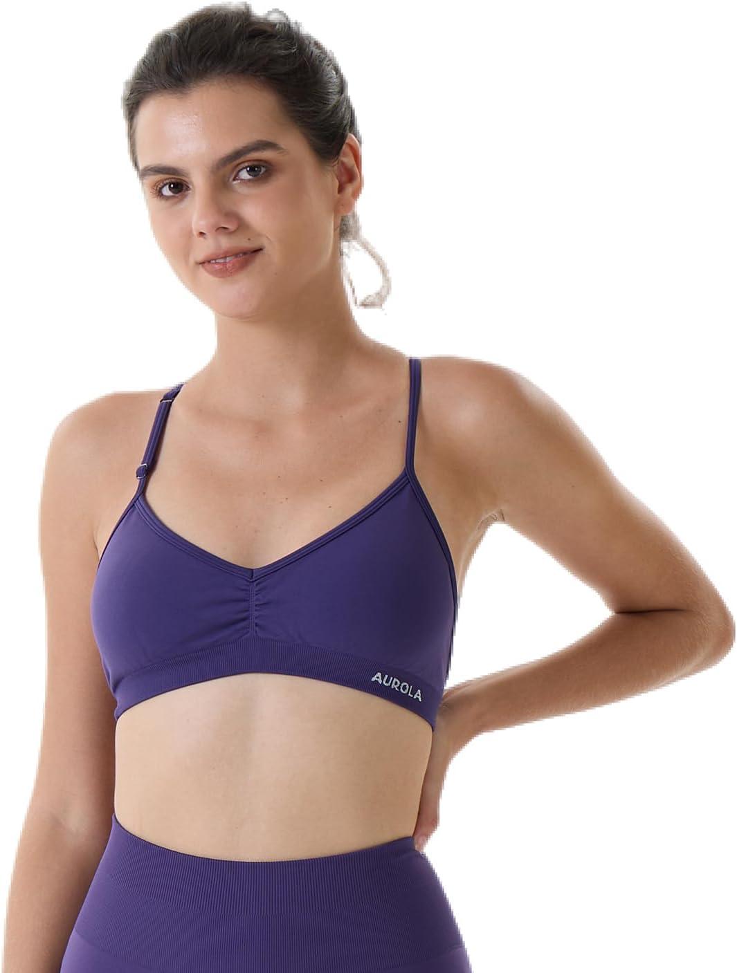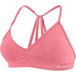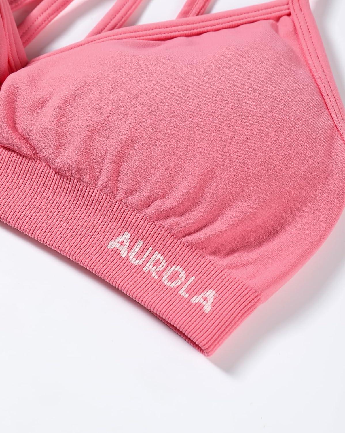 AUROLA Mercury Workout Sports Bras Women Athletic Removable Padded Backless Strapy Minimal Crop Top(Seamless-raspberry Sorbet)