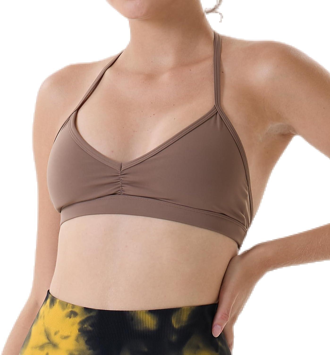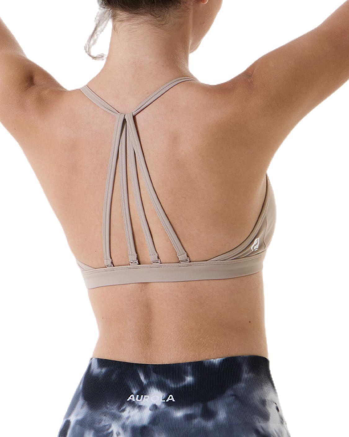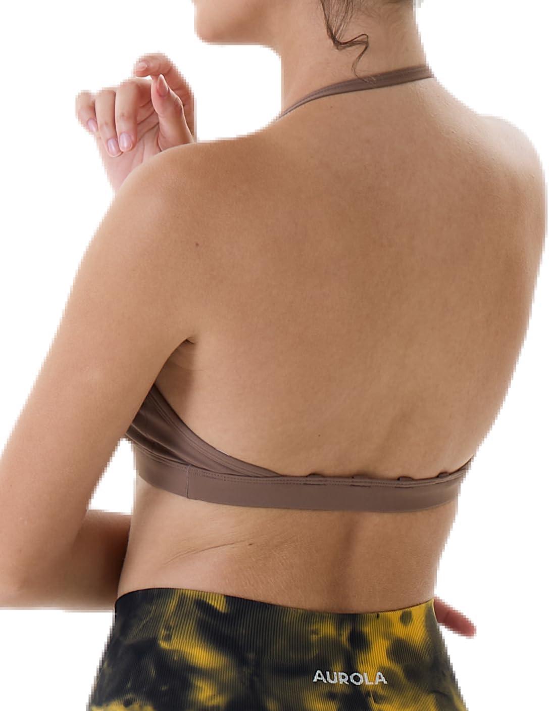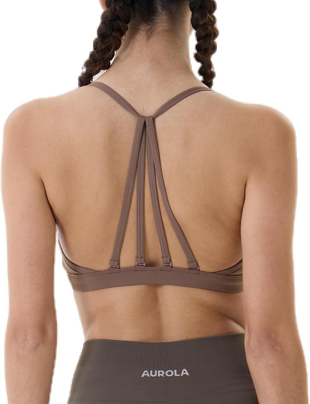 AUROLA Mercury Workout Sports Bras Women Athletic Removable Padded Backless Strapy Minimal Crop Top(Seamless-chocolate Torte)