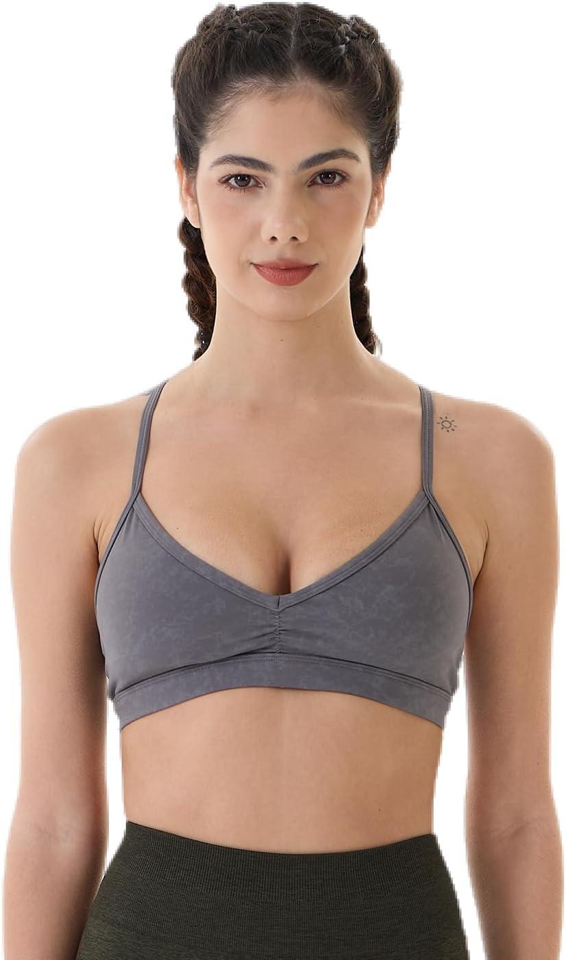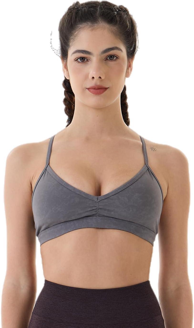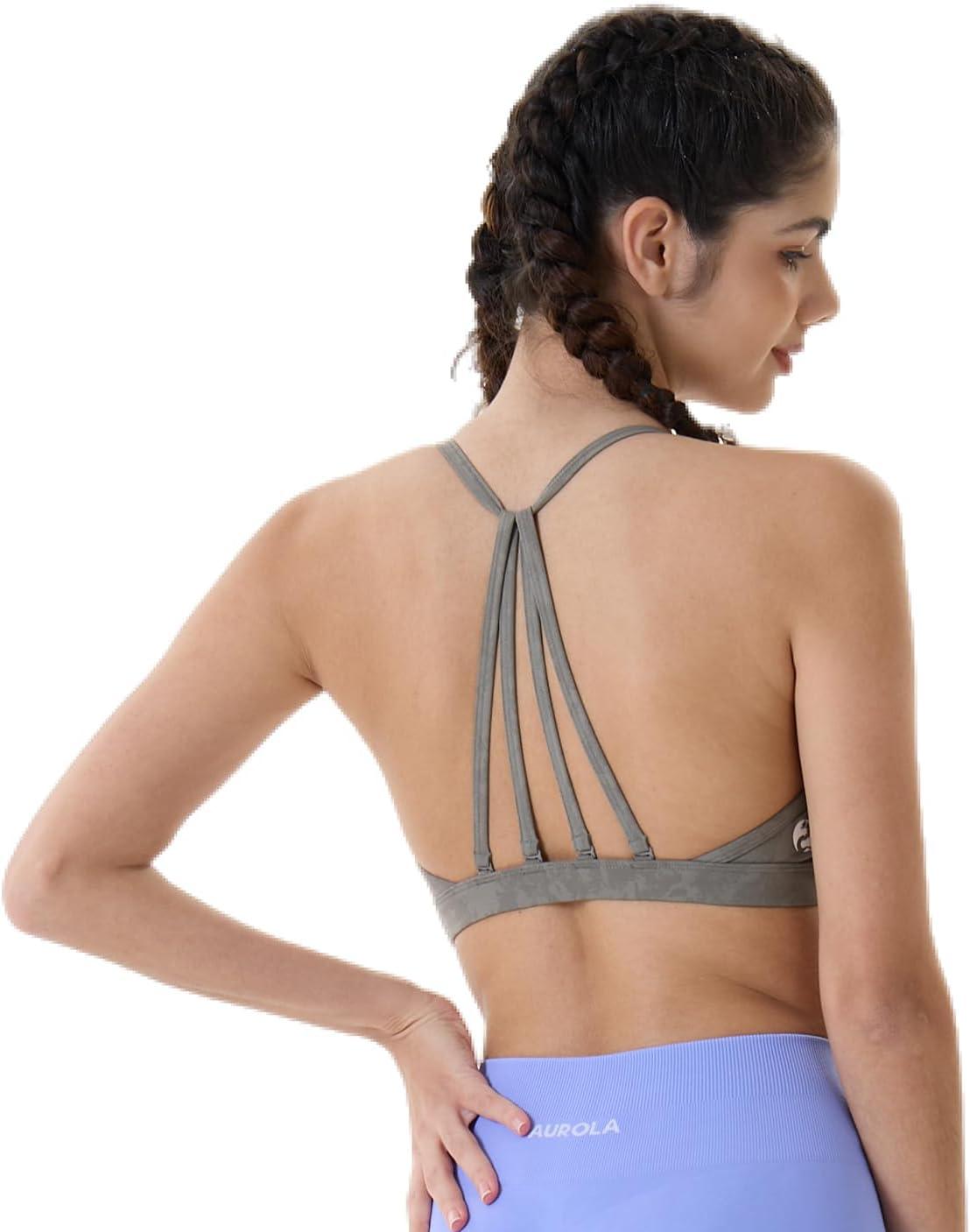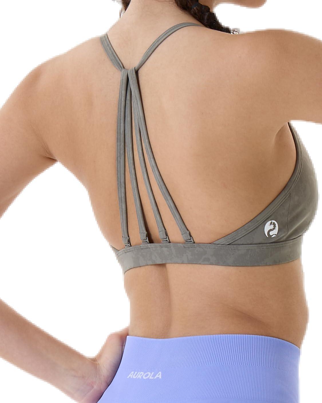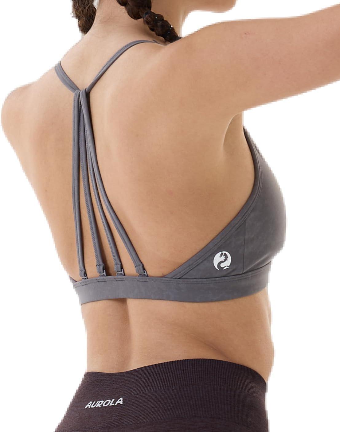 AUROLA Mercury Workout Sports Bras Women Athletic Removable Padded Backless Strapy Minimal Crop Top(Seamless- Volcanic Grey)