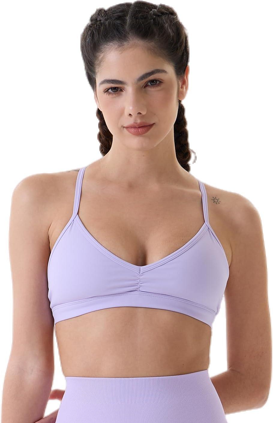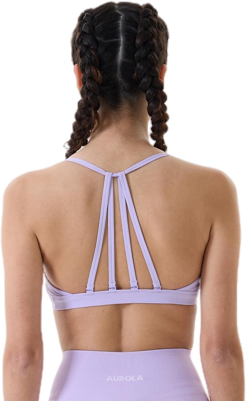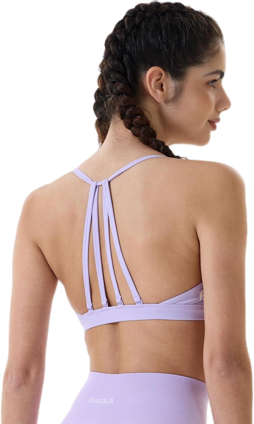 AUROLA Influence Longline Strappy Workout Halter Tops for Women,Removable Cups Padded Bras Impact Gym Yoga Sleeveless Top(Lavender)