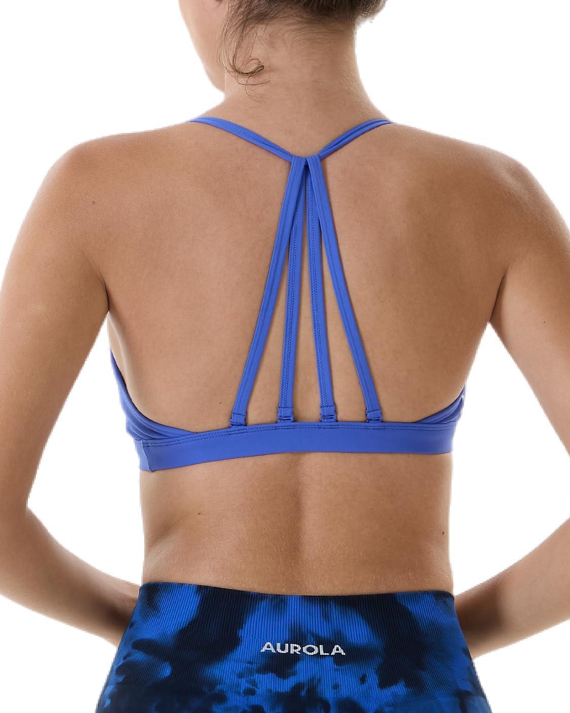 AUROLA Mercury Workout Sports Bras Women Athletic Removable Padded Backless Strapy Minimal Crop Top(Seamless-klein Blue)
