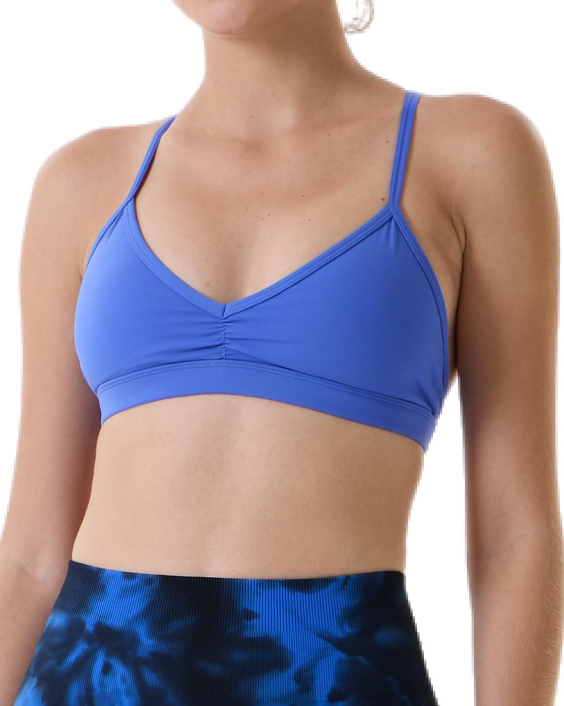 AUROLA Mercury Workout Sports Bras Women Athletic Removable Padded Backless Strapy Minimal Crop Top(Seamless-blue Danube)