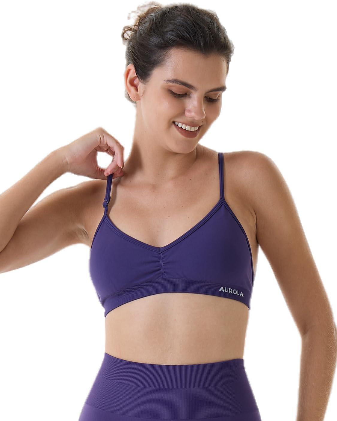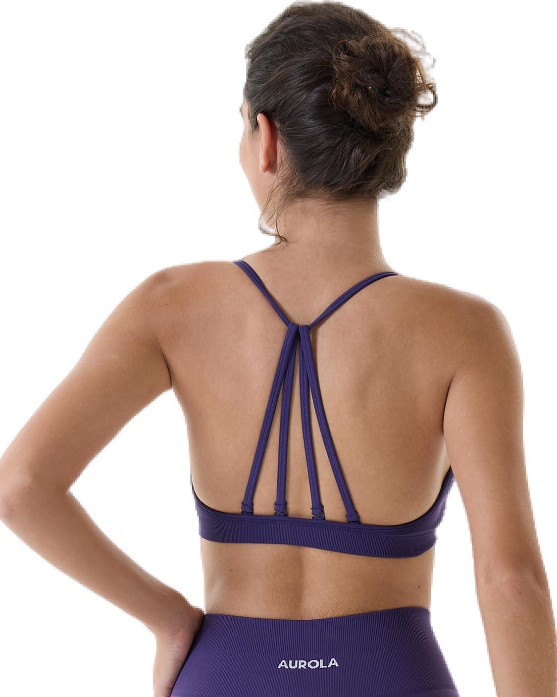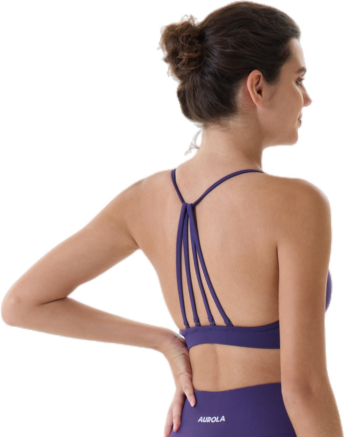 AUROLA Influence Longline Strappy Workout Halter Tops for Women,Removable Cups Padded Bras Impact Gym Yoga Sleeveless Top(Jacaranda)
