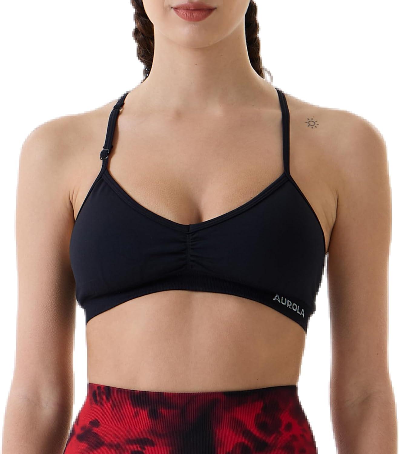 AUROLA Mercury Workout Sports Bras Women Athletic Removable Padded Backless Strapy Minimal Crop Top(Seamless-black)