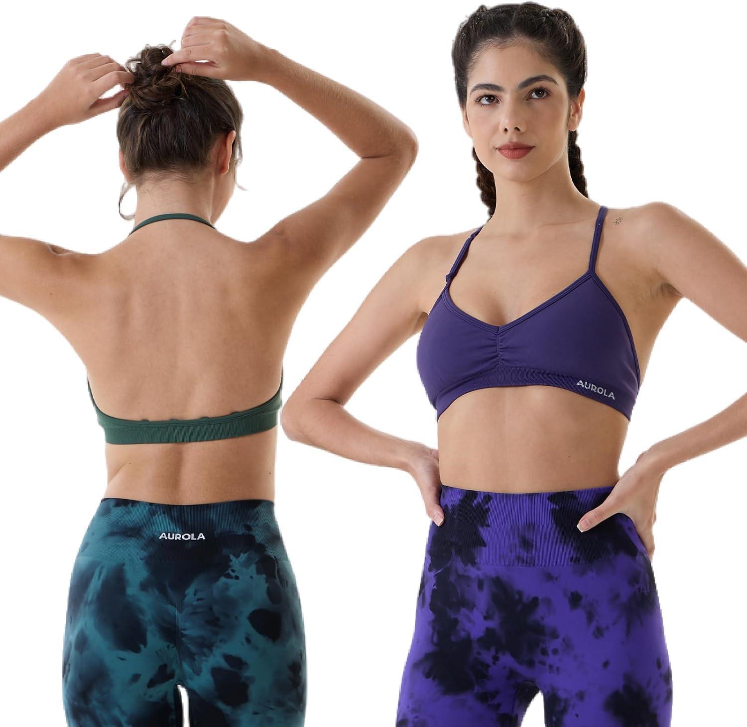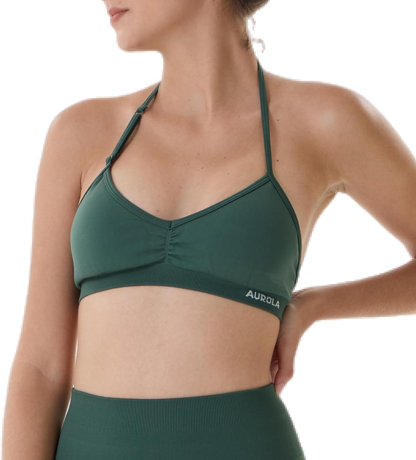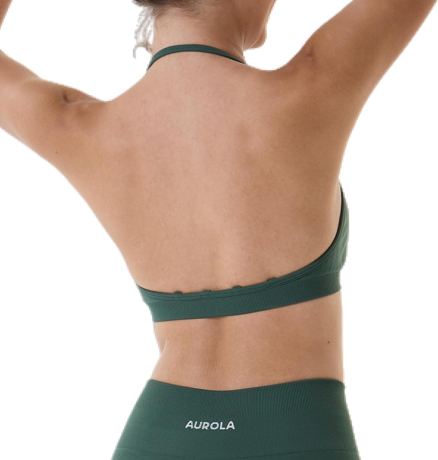 AUROLA Mercury Workout Sports Bras Women Athletic Removable Padded Backless Strapy Minimal Crop Top(Seamless-eden Green)