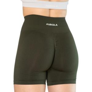 AUROLA Serpent Seamless Scrunch Workout Shorts for Women,Tummy Control Squat Proof Ribbed Thick Active Gym Short(Serpent- Ponderosa Green)