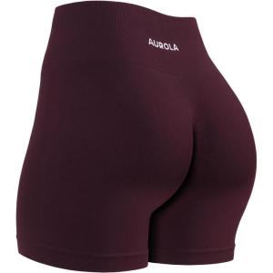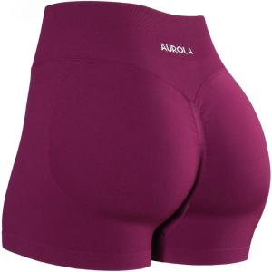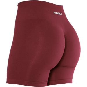 AUROLA Influence Workout Shorts for Women,2.5 3.5 4.5 5.5 6.5 No Roll Up Squat Proof Scrunch Seamless Compression Gym Short(Black Cherry)