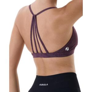 AUROLA Influence Longline Strappy Workout Halter Tops for Women,Removable Cups Padded Bras Impact Gym Yoga Sleeveless Top(Plum Truffle)