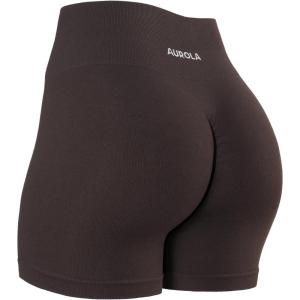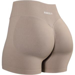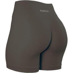 AUROLA Influence Workout Shorts for Women,2.5 3.5 4.5 5.5 6.5 No Roll Up Squat Proof Scrunch Seamless Compression Gym Short(Coffee)