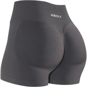 AUROLA Power Workout Shorts for Women Tummy Control Squat Proof Ribbed Thick Seamless Scrunch Active Short(Dark Grey)