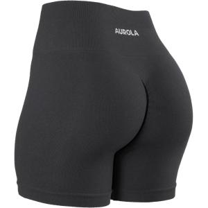 AUROLA Influence Workout Shorts for Women,2.5 3.5 4.5 5.5 6.5 No Roll Up Squat Proof Scrunch Seamless Compression Gym Short(Black)
