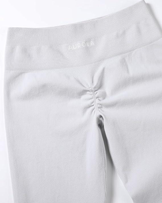 AUROLA Power Workout Leggings for Women Tummy Control Squat Proof Ribbed Thick Seamless Scrunch Active Pants(Blanc De Blanc)