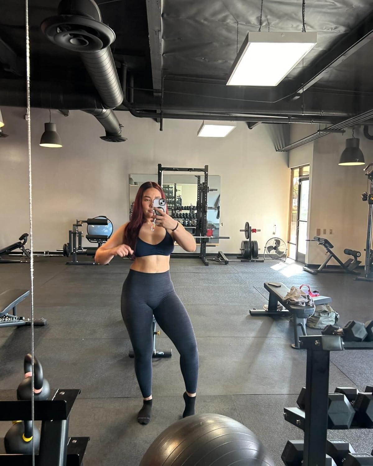 AUROLA Workout Leggings for Women Seamless Scrunch Tights Tummy Control Gym Fitness Girl Sport Active Yoga Pants(Grey Black)