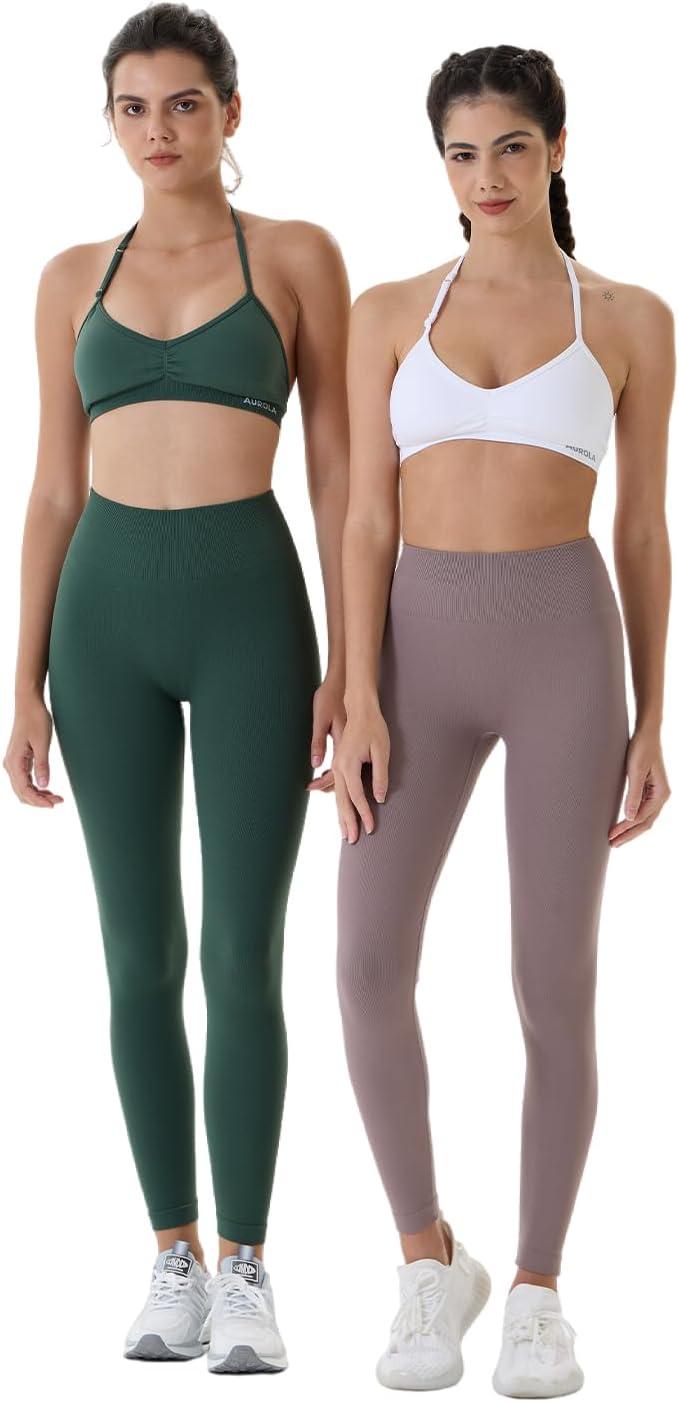 AUROLA Dream Collection Workout Leggings for Women High Waist Seamless Scrunch Athletic Running Gym Fitness Active Pants(Set(black+black))