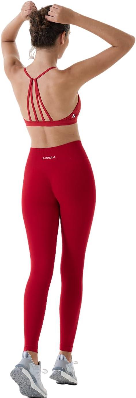 AUROLA Dream Collection Workout Leggings for Women High Waist Seamless Scrunch Athletic Running Gym Fitness Active Pants(Chinese Red)