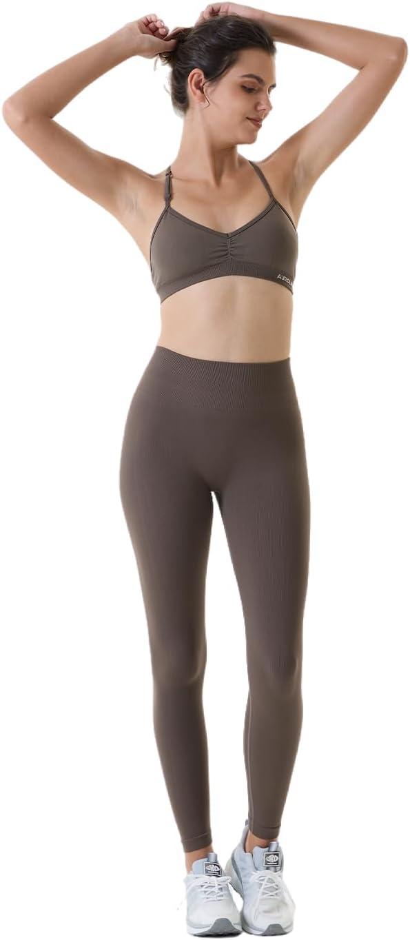 AUROLA Workout Leggings for Women Seamless Scrunch Tights Tummy Control Gym Fitness Girl Sport Active Yoga Pants(Seal Brown)