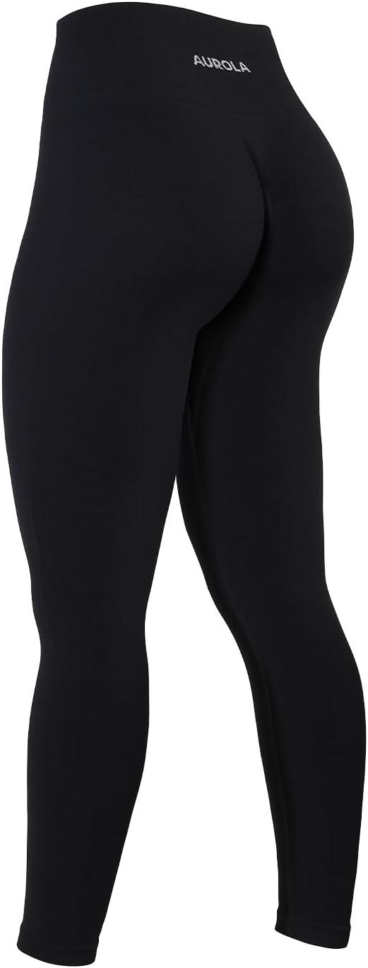 AUROLA Workout Leggings for Women Seamless Scrunch Tights Tummy Control Gym Fitness Girl Sport Active Yoga Pants(Black)