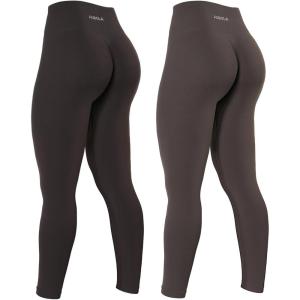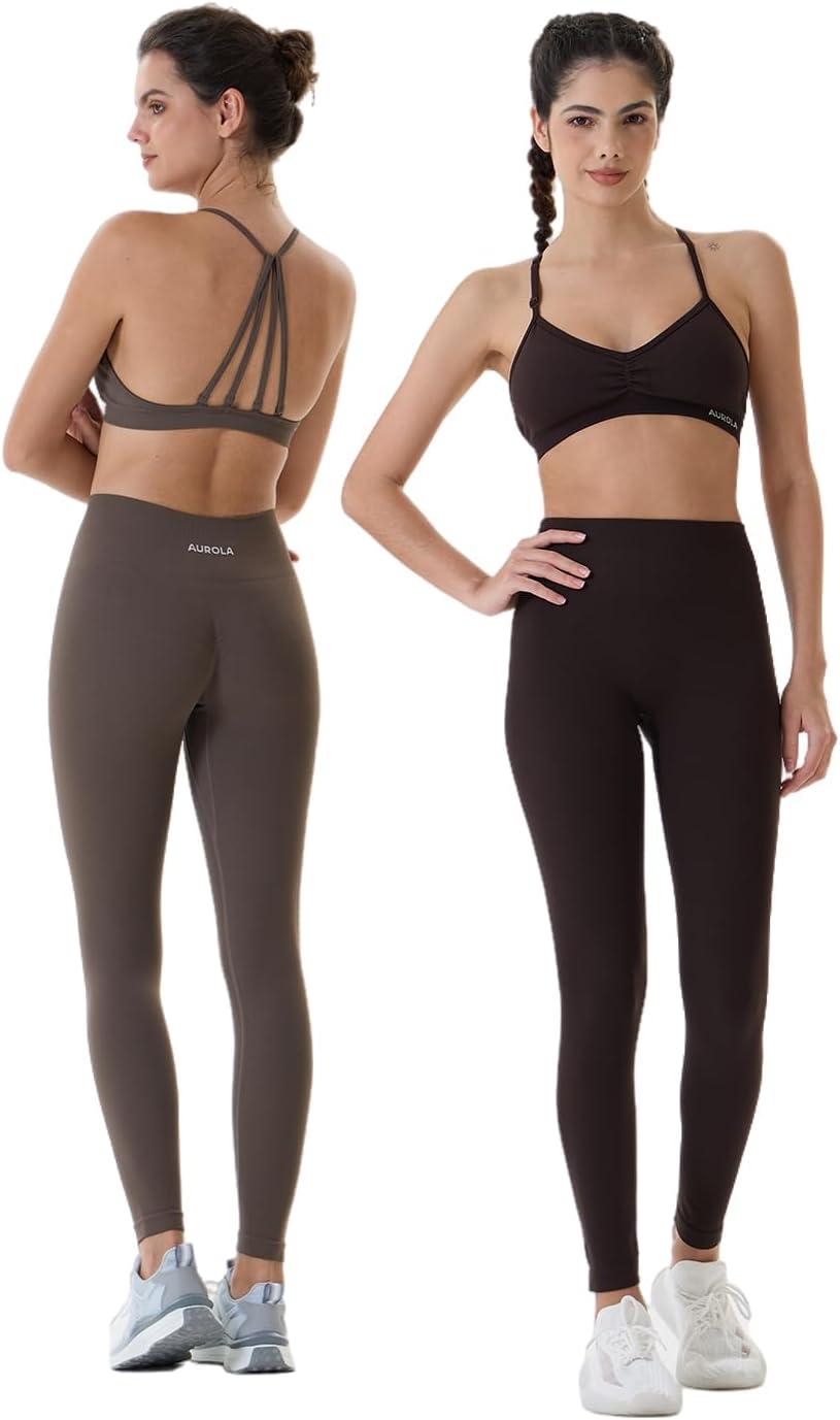 AUROLA Workout Leggings for Women Seamless Scrunch Tights Tummy Control Gym Fitness Girl Sport Active Yoga Pants(Pack (Black+chestnut Brown))