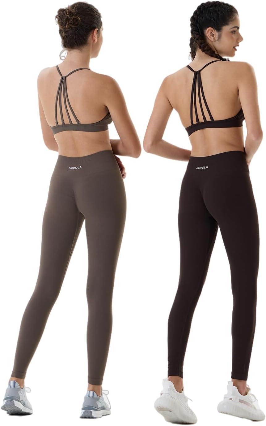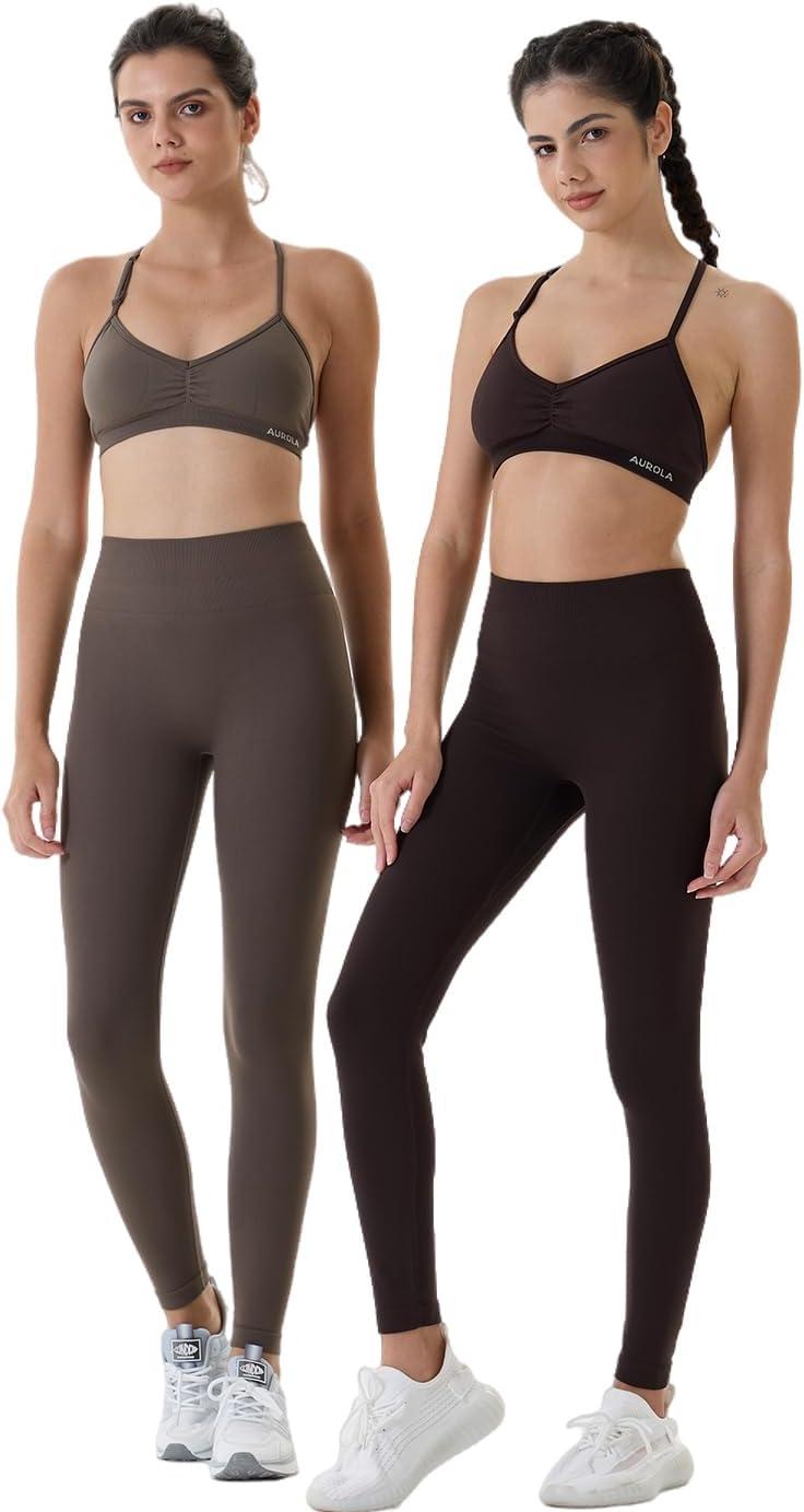 AUROLA Workout Leggings for Women Seamless Scrunch Tights Tummy Control Gym Fitness Girl Sport Active Yoga Pants(Set (Chestnut Brown+dandelion Brown))