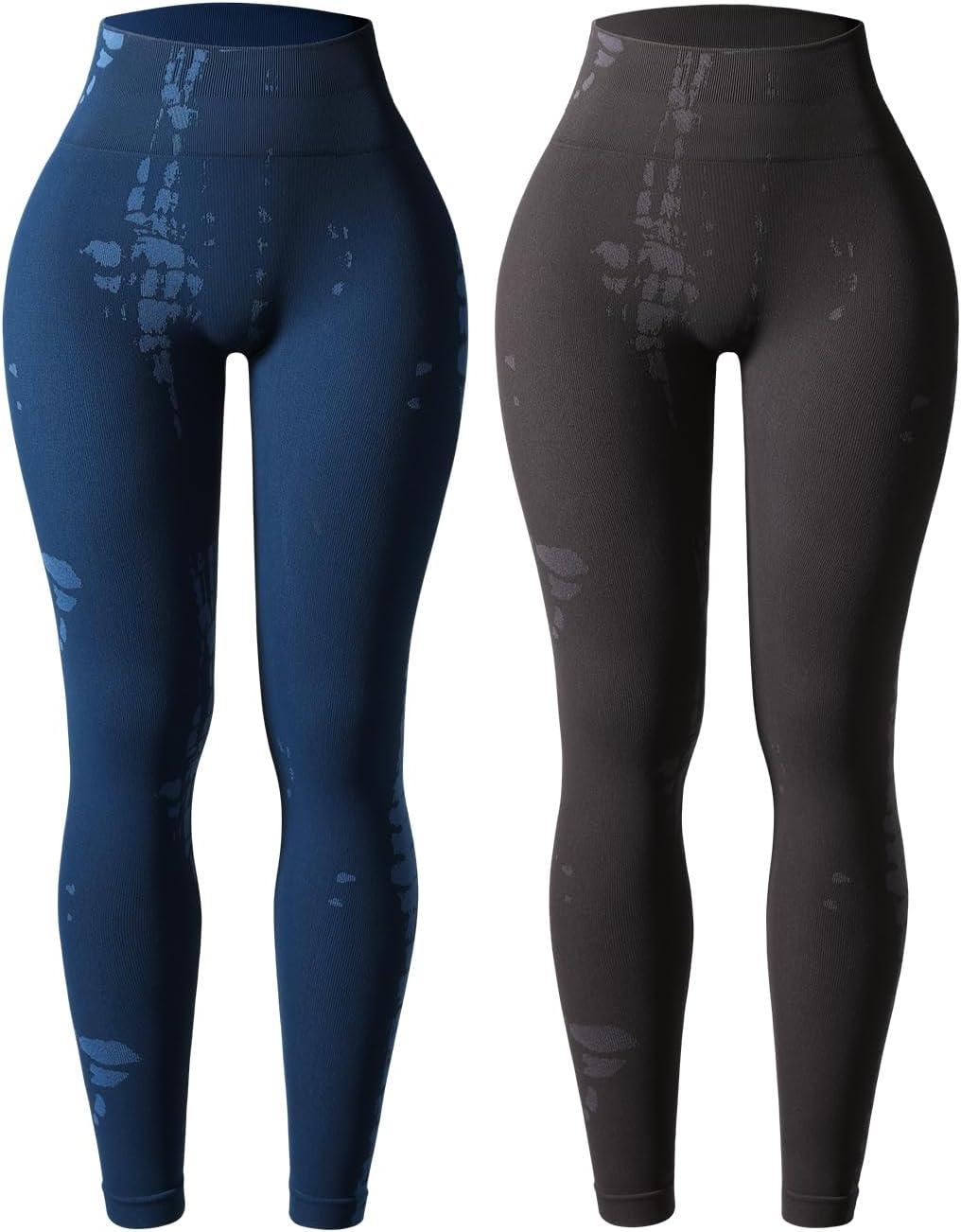 AUROLA Workout Leggings for Women Seamless Scrunch Tights Tummy Control Gym Fitness Girl Sport Active Yoga Pants(Set (Black+naval Academy))