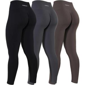 AUROLA Workout Leggings for Women Seamless Scrunch Tights Tummy Control Gym Fitness Girl Sport Active Yoga Pants(Pack(black/Black Cherry/Dandelion Brown))
