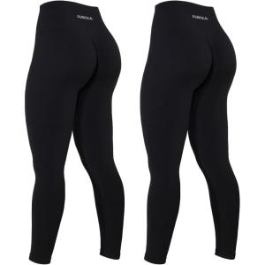 AUROLA Power Workout Leggings for Women Tummy Control Squat Proof Ribbed Thick Seamless Scrunch Active Pants(Set (Black+black))