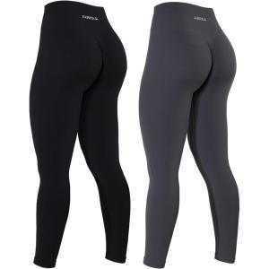 AUROLA Workout Leggings for Women Seamless Scrunch Tights Tummy Control Gym Fitness Girl Sport Active Yoga Pants(Set (Black+dark Grey))