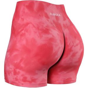 • AUROLA Dream Tie Dye Workout Shorts for Women Seamless Scrunch Soft Active Shorts(Lychee)