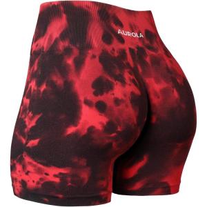 • AUROLA Dream Tie Dye Workout Shorts for Women Seamless Scrunch Soft Active Shorts(Red-black Tie Dye)