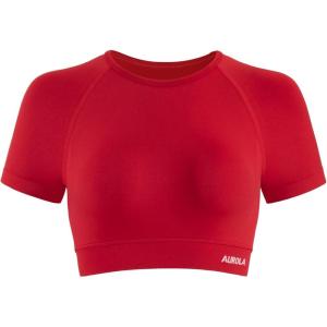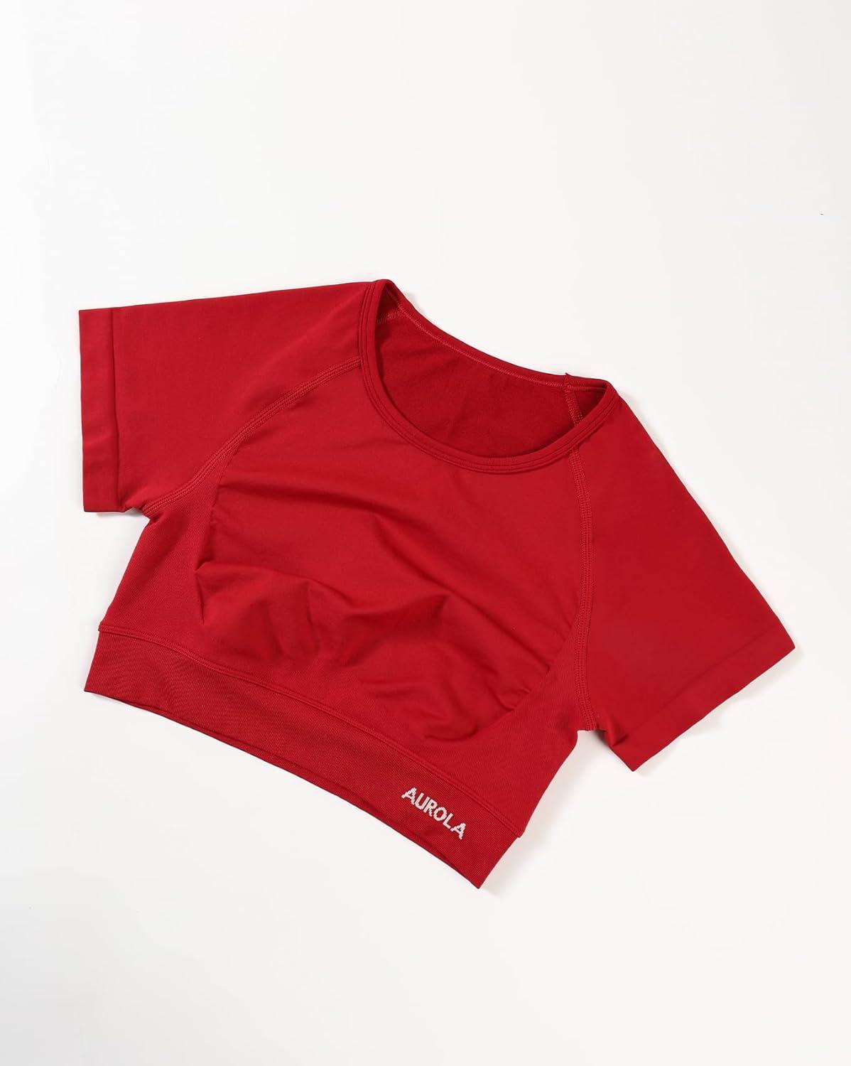 AUROLA Influence Crop Top Workout Shirts for Women, Ultra-Soft Seamless Gym T Shirts Short Sleeve Running Workout Tops(Chili Red)