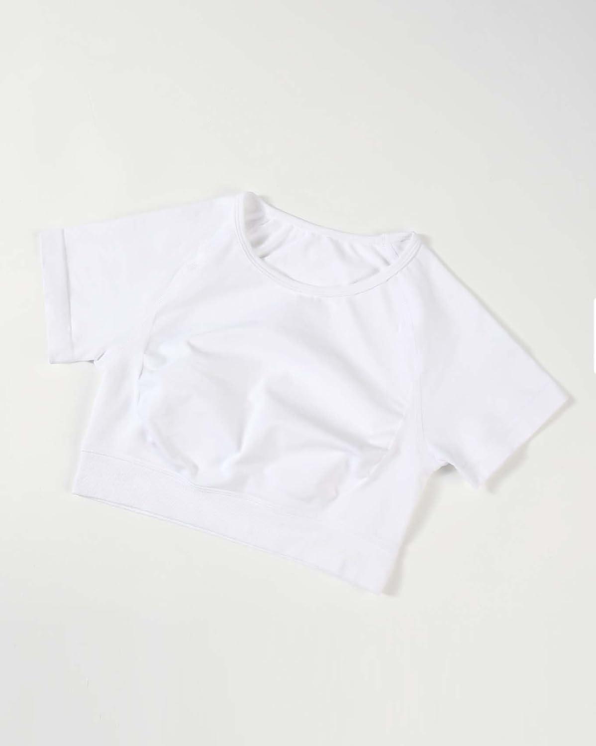AUROLA Influence Crop Top Workout Shirts for Women, Ultra-Soft Seamless Gym T Shirts Short Sleeve Running Workout Tops(Crescent White)