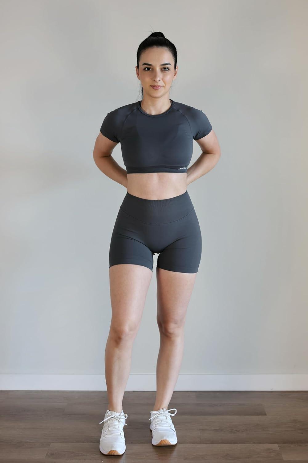 AUROLA Influence Crop Top Workout Shirts for Women, Ultra-Soft Seamless Gym T Shirts Short Sleeve Running Workout Tops(Dark Grey)