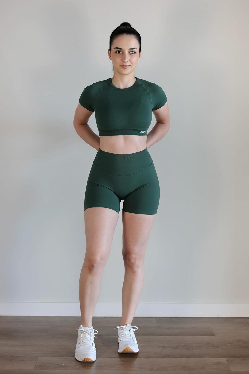 AUROLA Influence Crop Top Workout Shirts for Women, Ultra-Soft Seamless Gym T Shirts Short Sleeve Running Workout Tops(Eden Green)