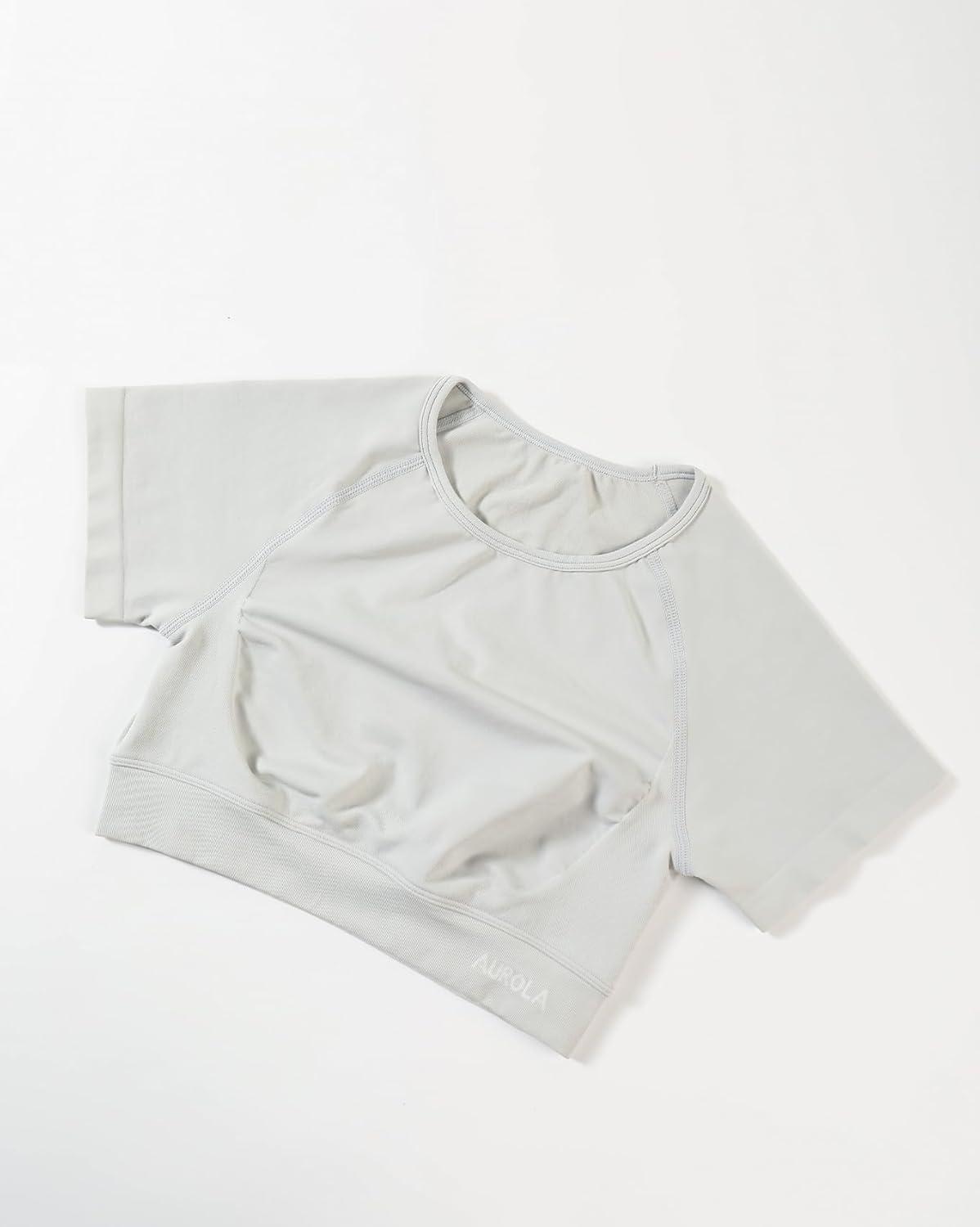 AUROLA Influence Crop Top Workout Shirts for Women, Ultra-Soft Seamless Gym T Shirts Short Sleeve Running Workout Tops(Glacier Gray)