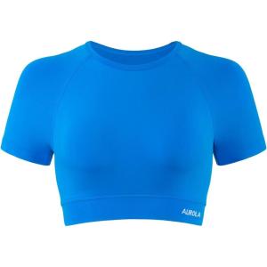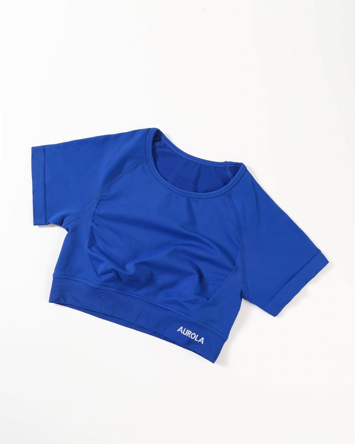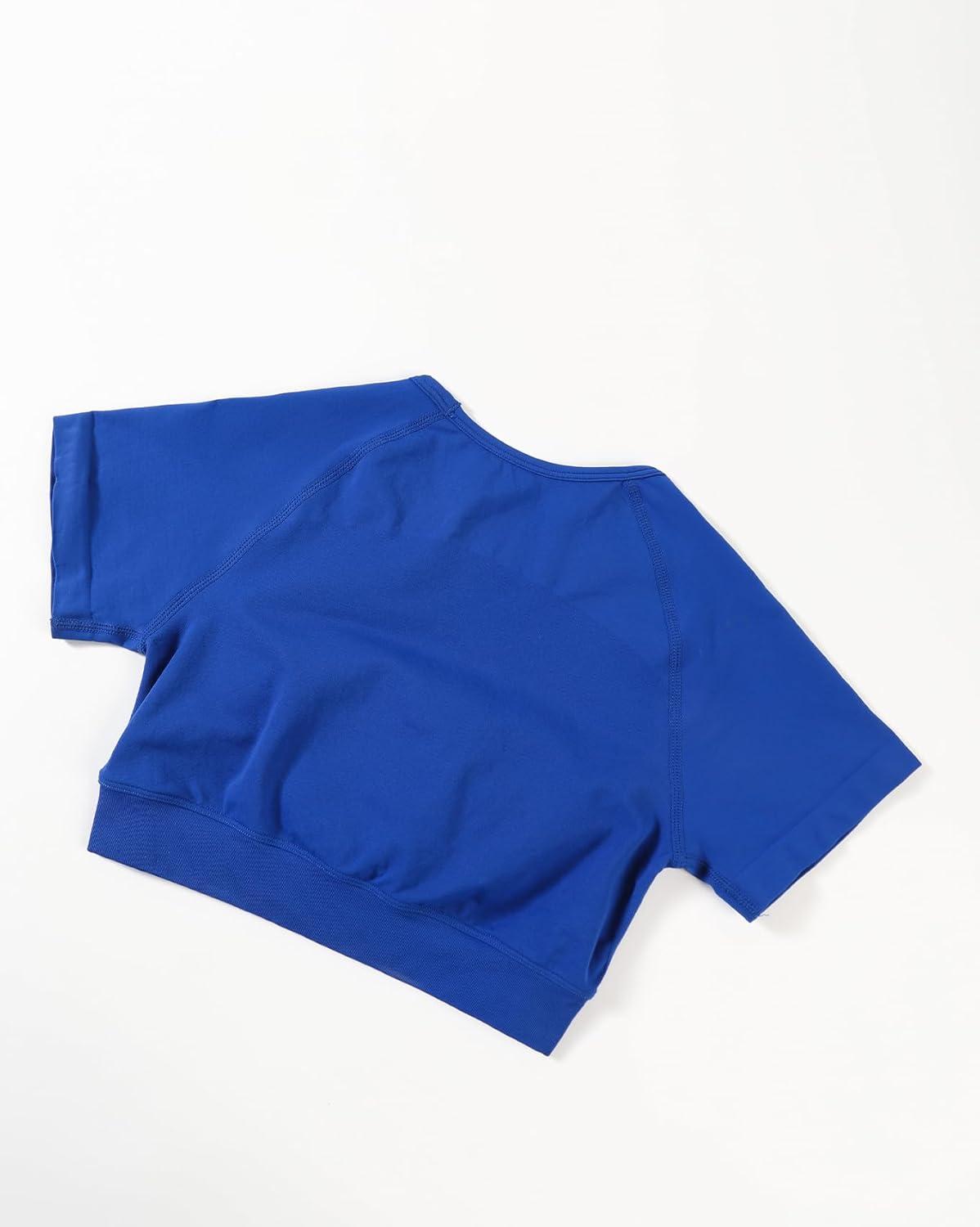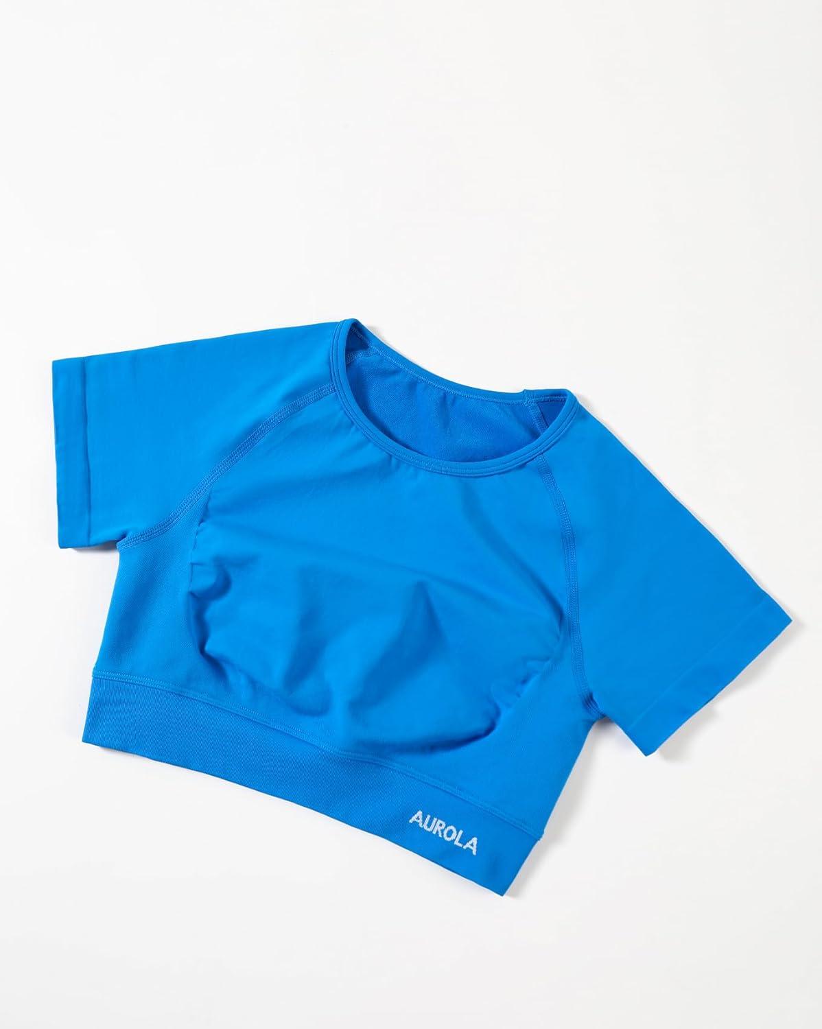 AUROLA Influence Crop Top Workout Shirts for Women, Ultra-Soft Seamless Gym T Shirts Short Sleeve Running Workout Tops(Klein Blue)
