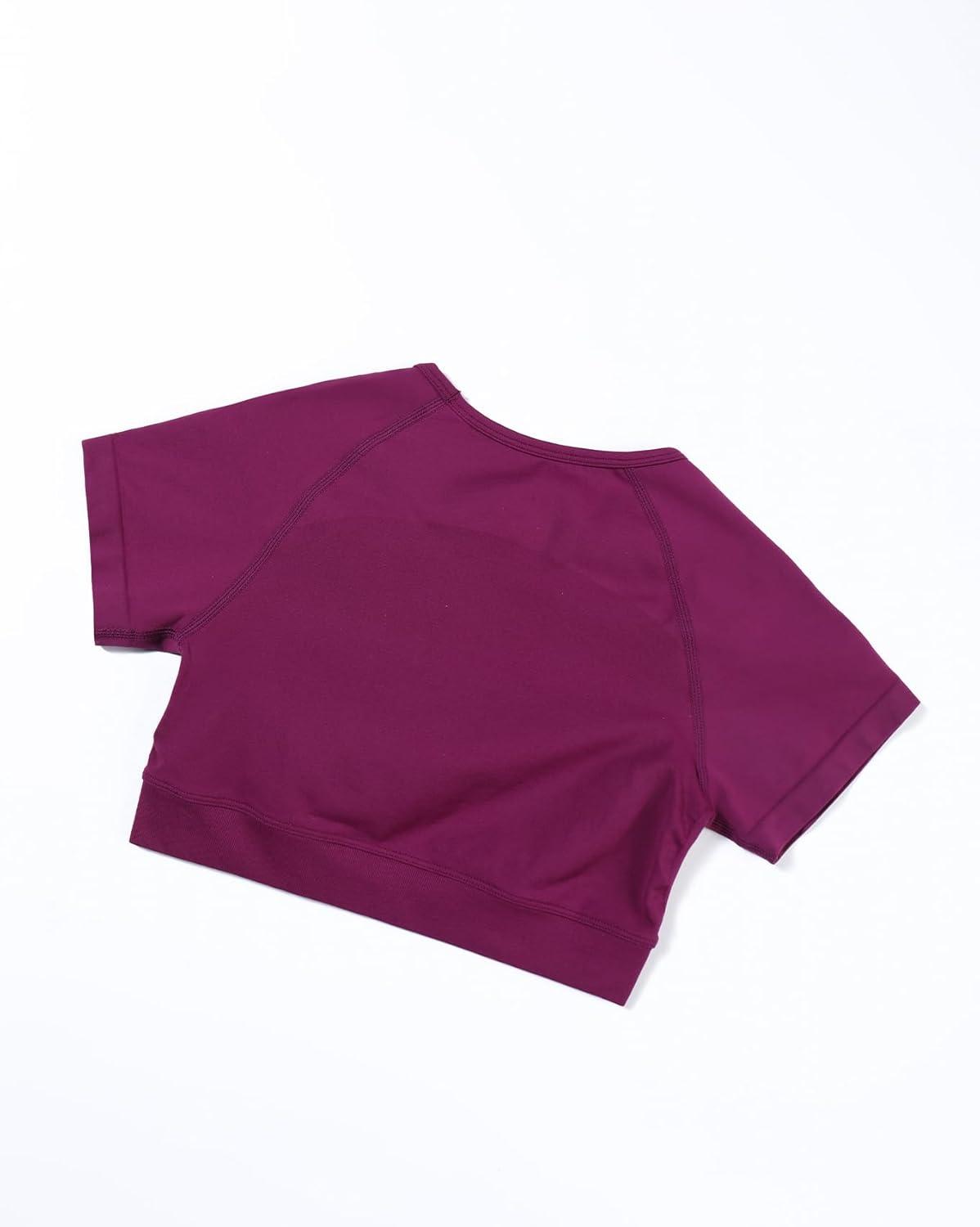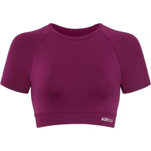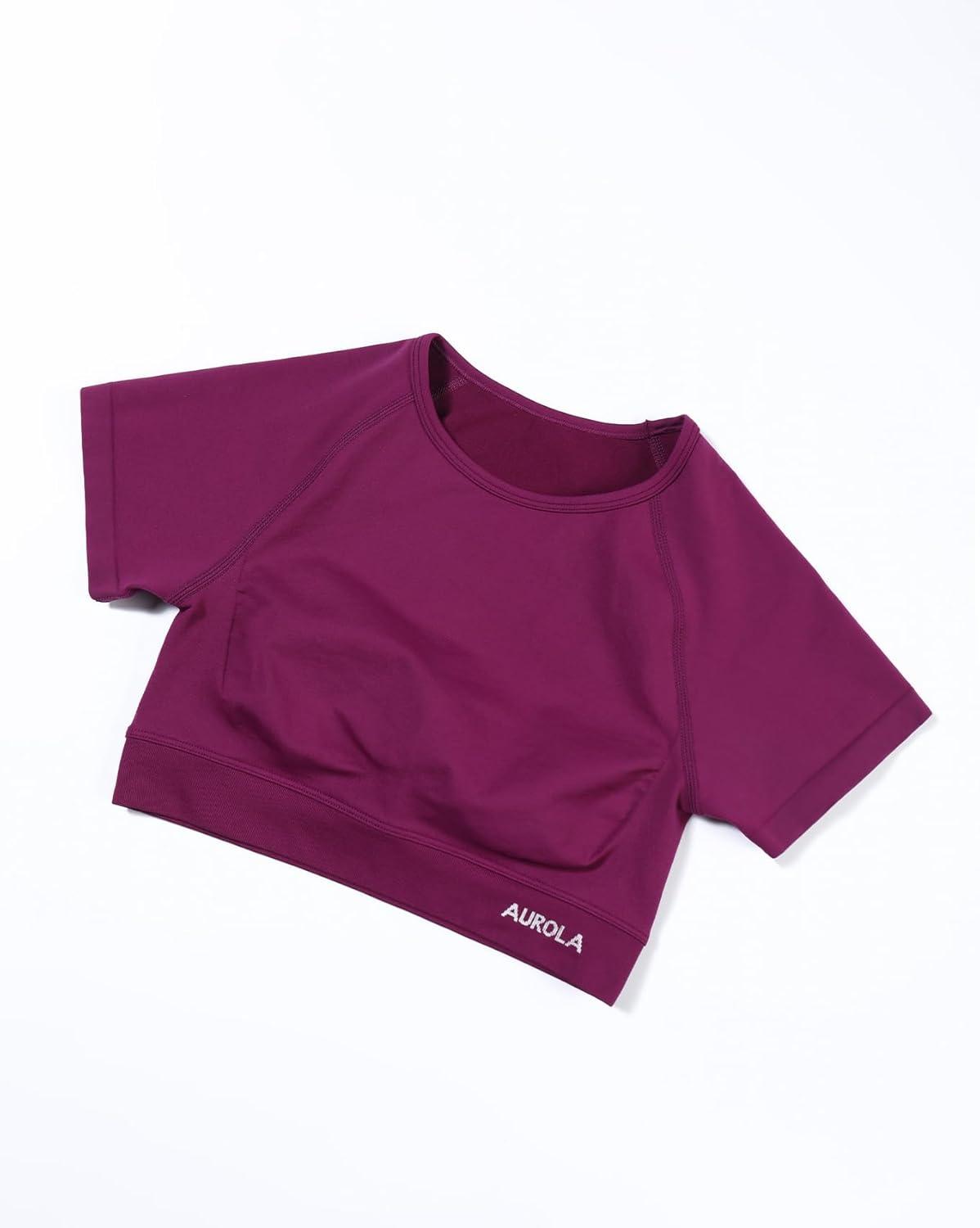 AUROLA Influence Crop Top Workout Shirts for Women, Ultra-Soft Seamless Gym T Shirts Short Sleeve Running Workout Tops(Plum Truffle)