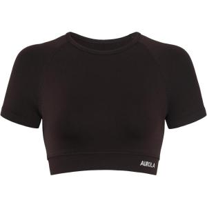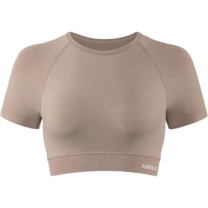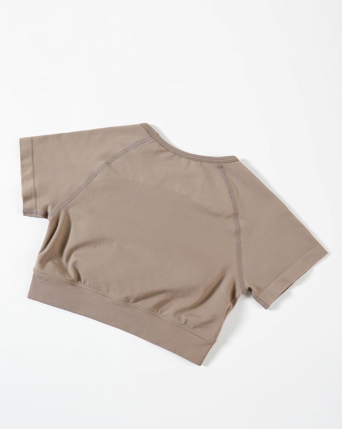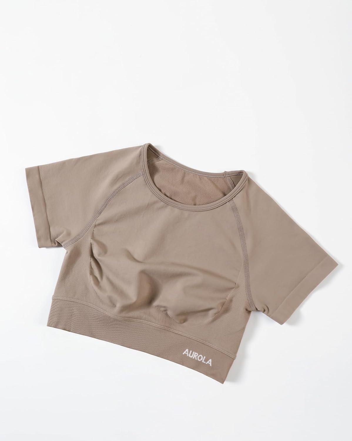 AUROLA Influence Crop Top Workout Shirts for Women, Ultra-Soft Seamless Gym T Shirts Short Sleeve Running Workout Tops(Coffee)