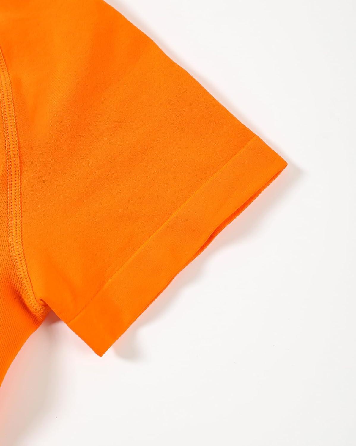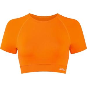 AUROLA Influence Crop Top Workout Shirts for Women, Ultra-Soft Seamless Gym T Shirts Short Sleeve Running Workout Tops(Persimmon Orange)