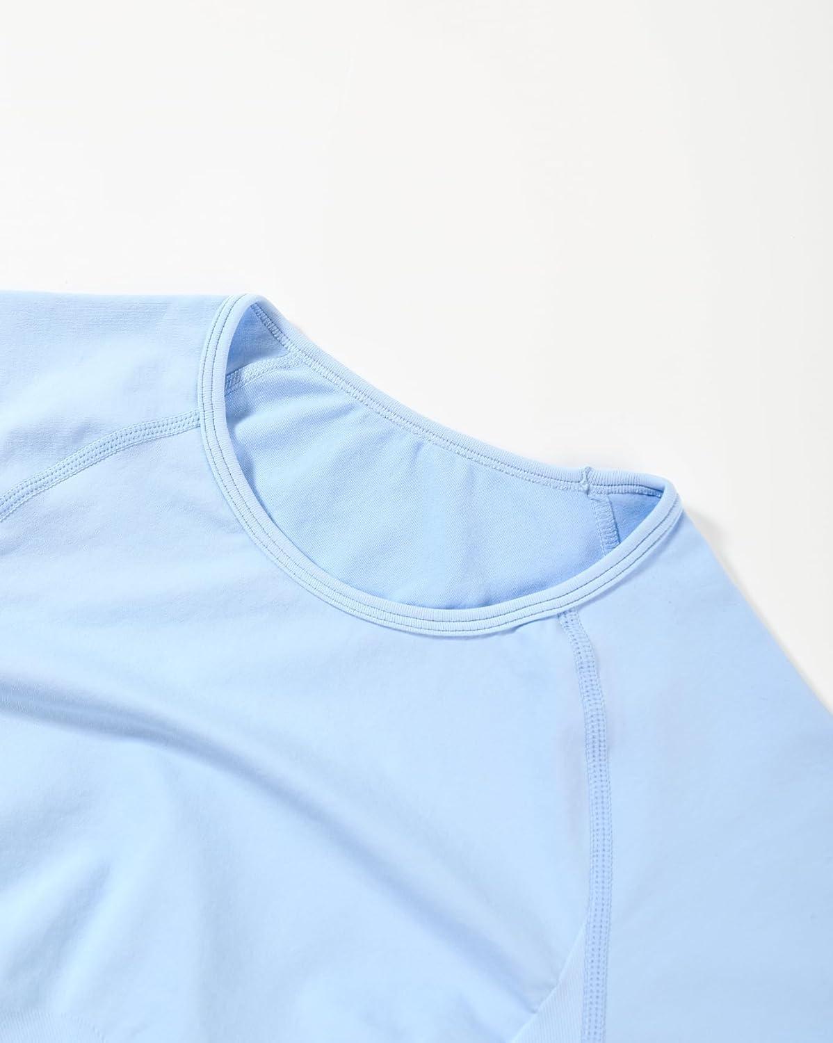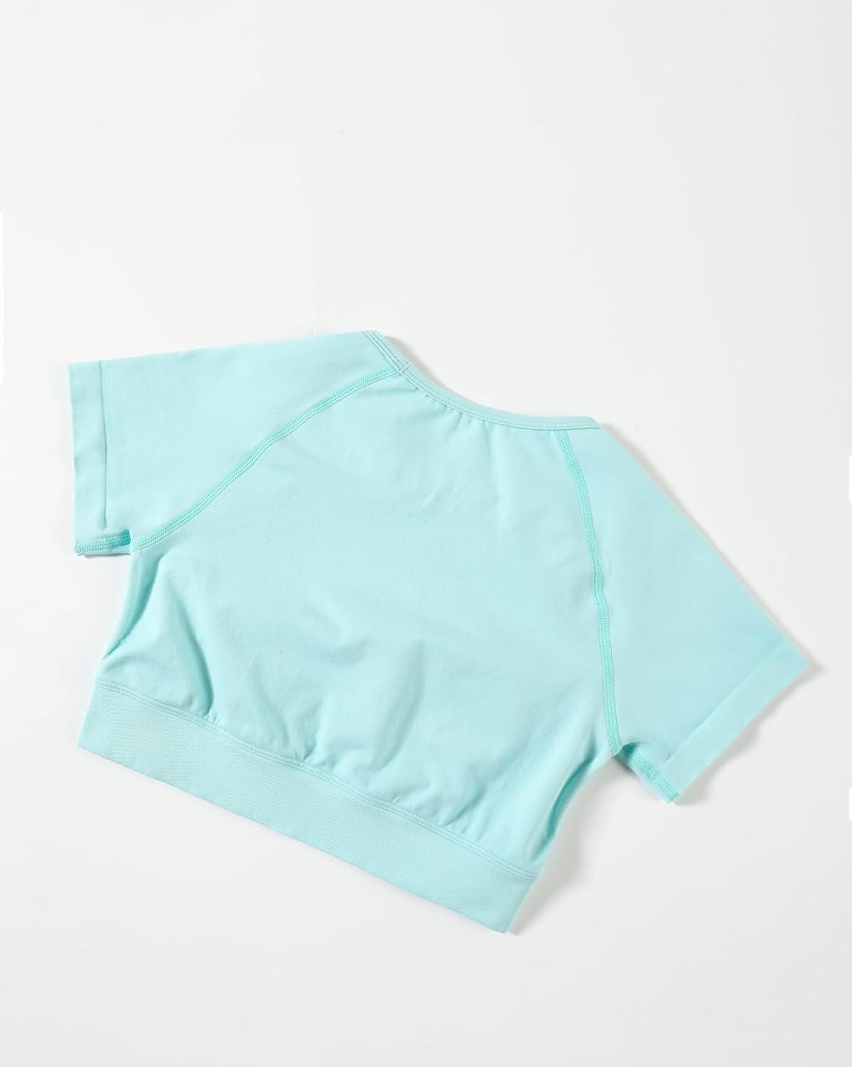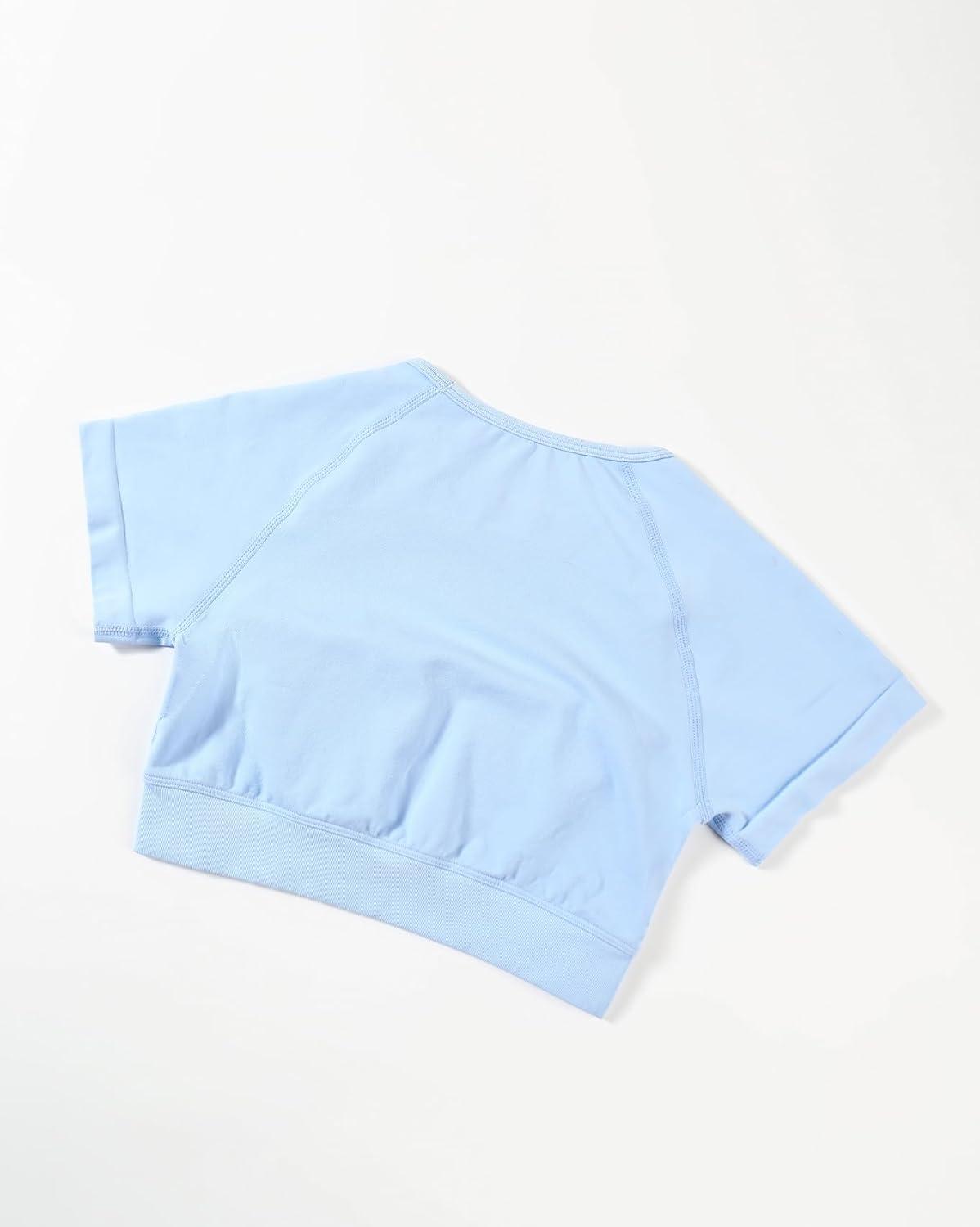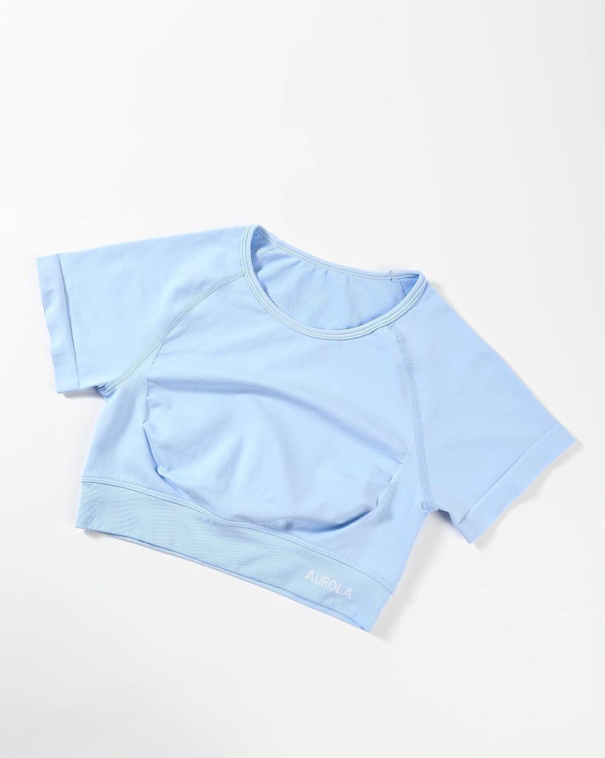 AUROLA Influence Crop Top Workout Shirts for Women, Ultra-Soft Seamless Gym T Shirts Short Sleeve Running Workout Tops(Sky Light)